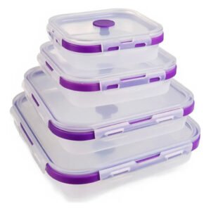 Lonchera Portacomida Plegable Cuadrada 4 Piezas De Silicona