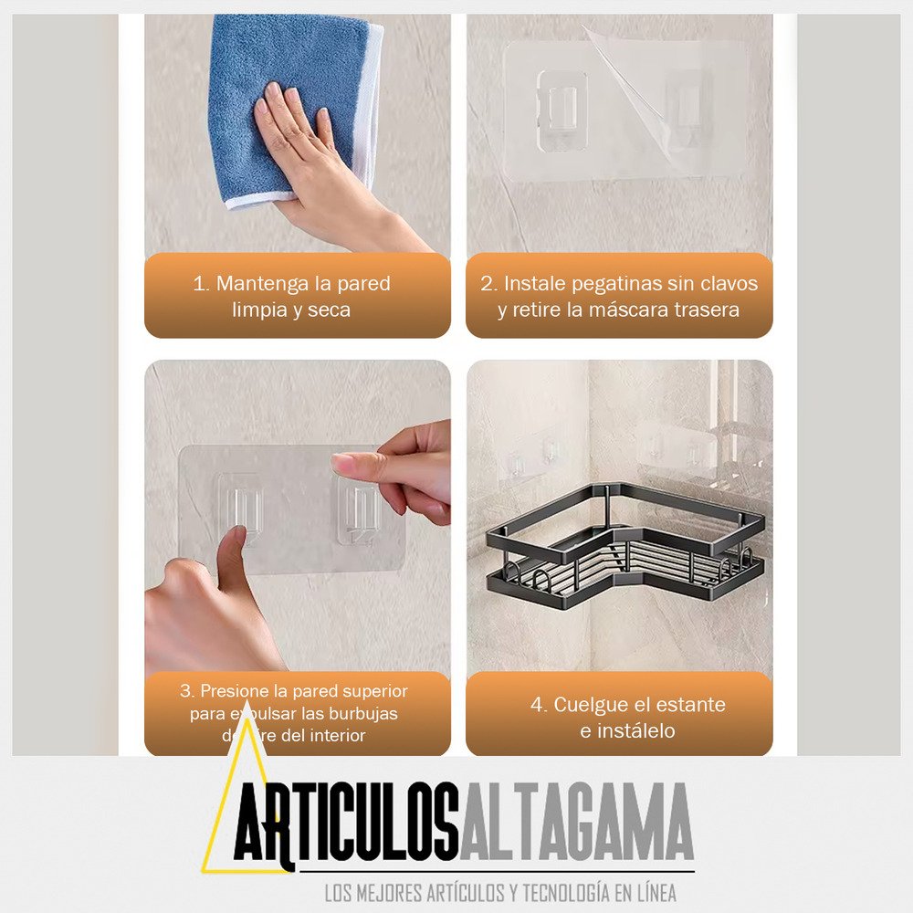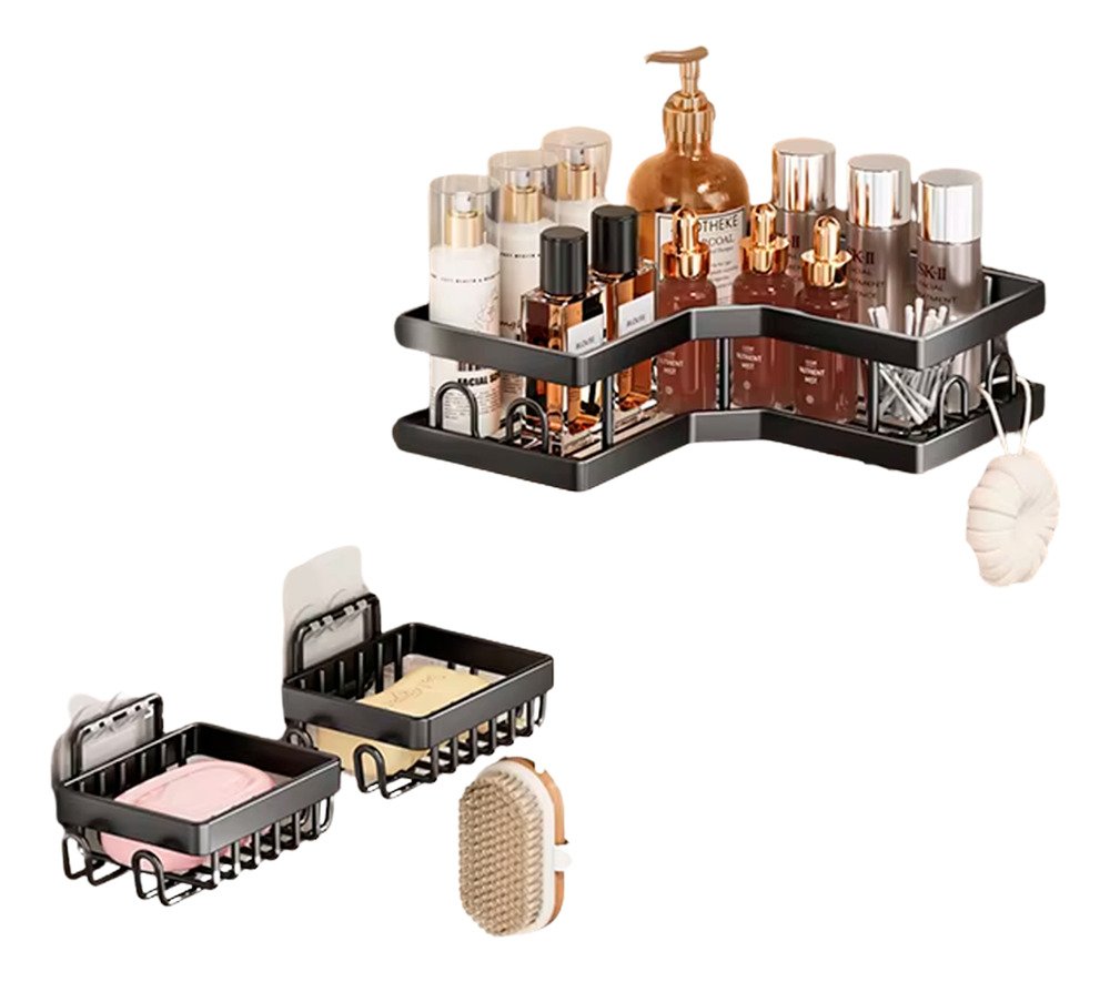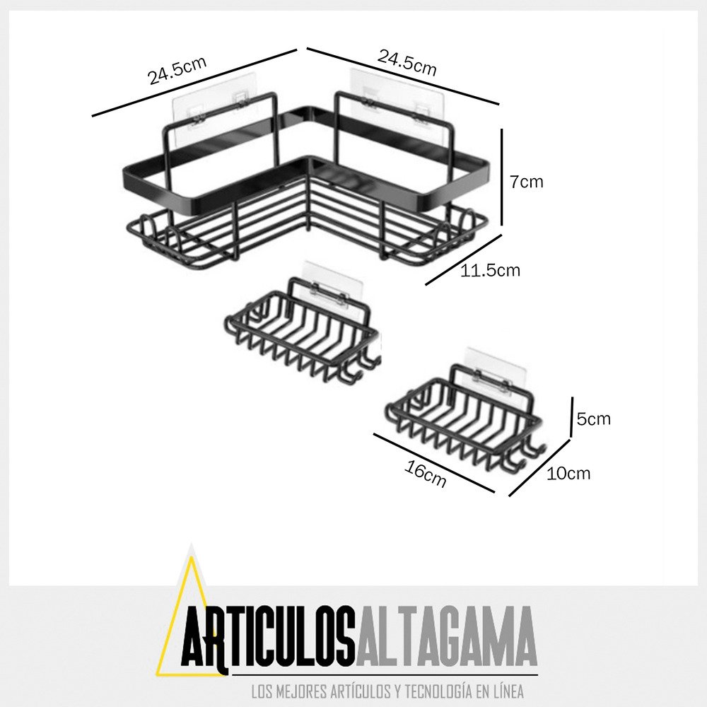 Mantén tu baño ordenado y moderno con este set de 3 estantes esquineros adhesivos. Son ideales para aprovechar el espacio de la ducha, organizando shampoo, jabón, cremas y accesorios sin necesidad de perforar la pared. Su diseño resistente al agua y de fácil instalación los hace perfectos para cualquier tipo de baño.