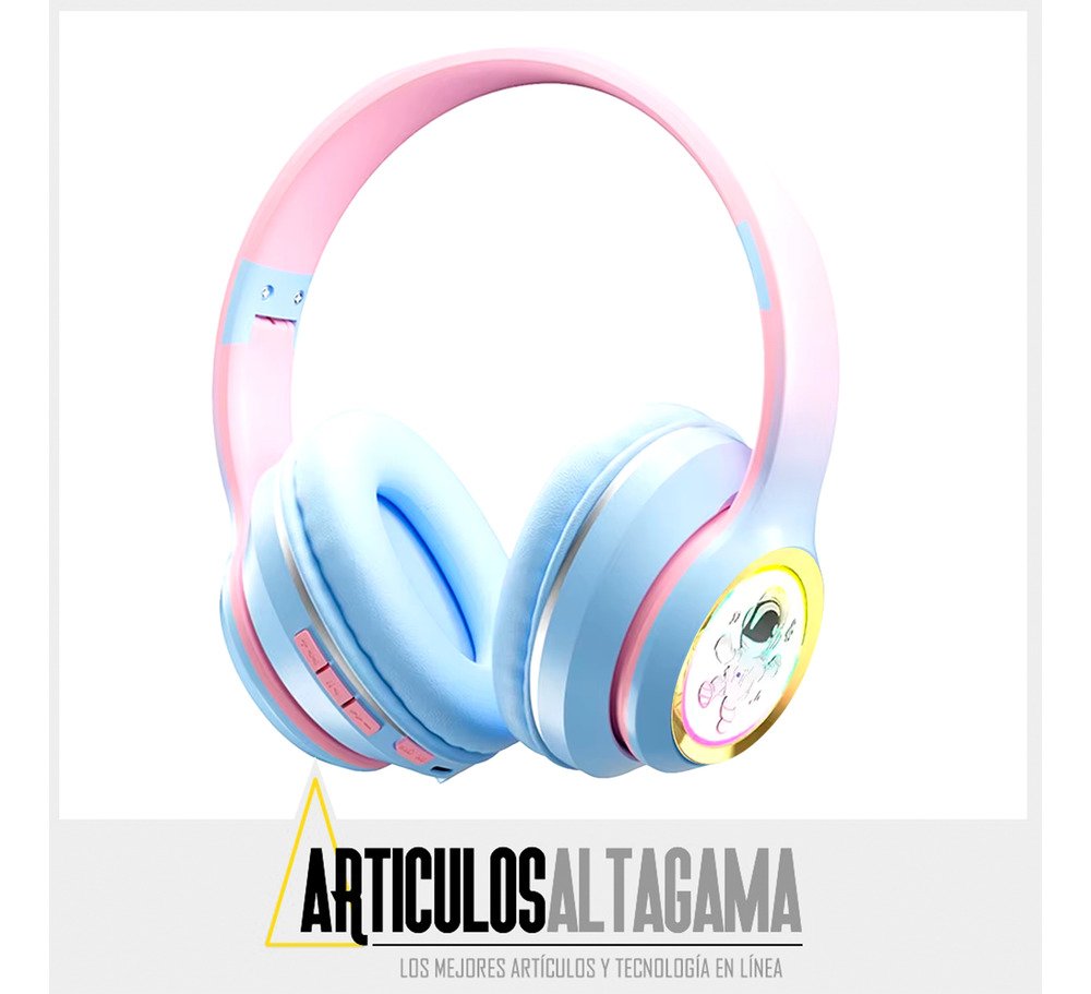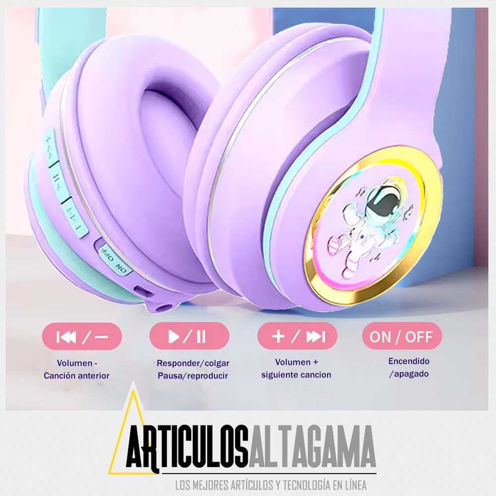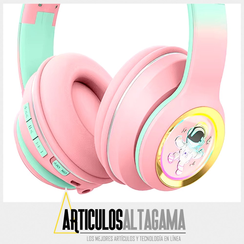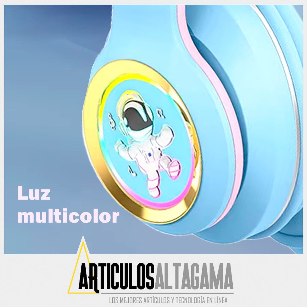 Con conexión Bluetooth, disfrutarás de un sonido nítido y envolvente al instante, pero si lo prefieres, también puedes usar la conexión auxiliar de 3.5mm o insertar una tarjeta TF con tu música favorita. Su diseño único, que presenta un astronauta en cada audífono y luces de colores vibrantes, no solo resalta tu estilo personal, ¡sino que también te hará brillar en cualquier ocasión! No te quedes sin el sonido y el estilo que mereces.