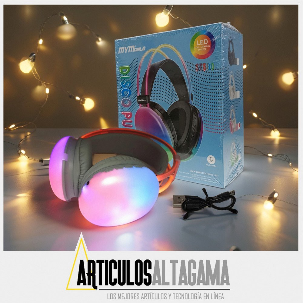 Audífonos Diadema Bluetooth TF Luz Rgb recargables Mym ST580