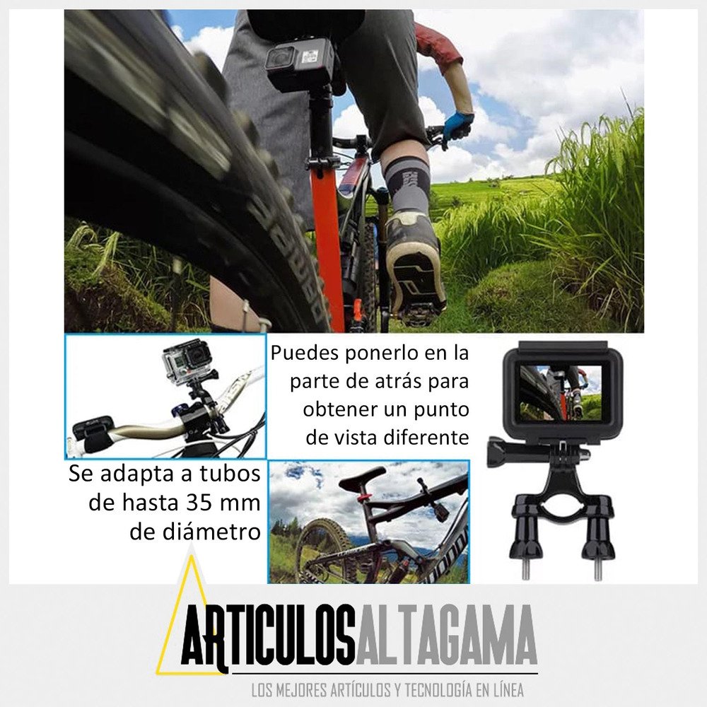 Con este soporte podrás poner tu cámara deportiva en el manubrio de tu bici con gran facilidad.