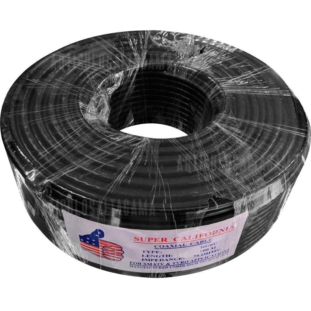 1-Cable Coaxial Negro Rg6 x Rollo De 100 Metros