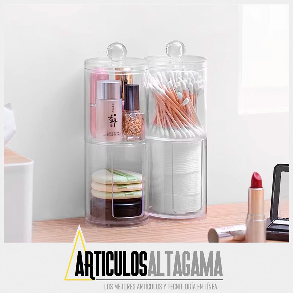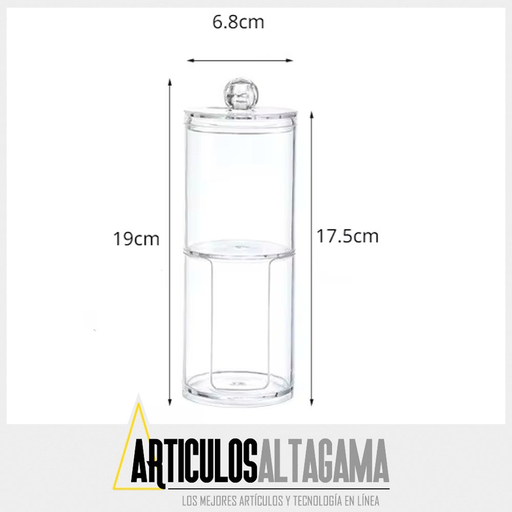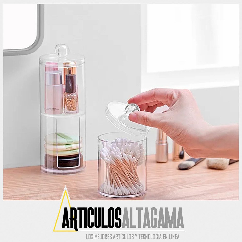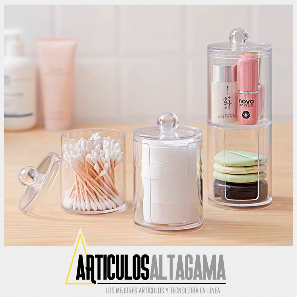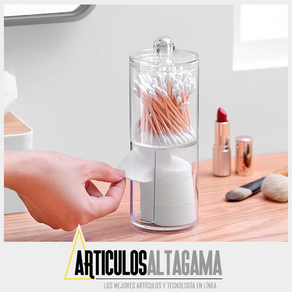 -Compartimentos separados: Dos secciones diferenciadas para almacenar de manera ordenada tanto los copitos de algodón como los discos desmaquillantes, evitando la mezcla de productos.