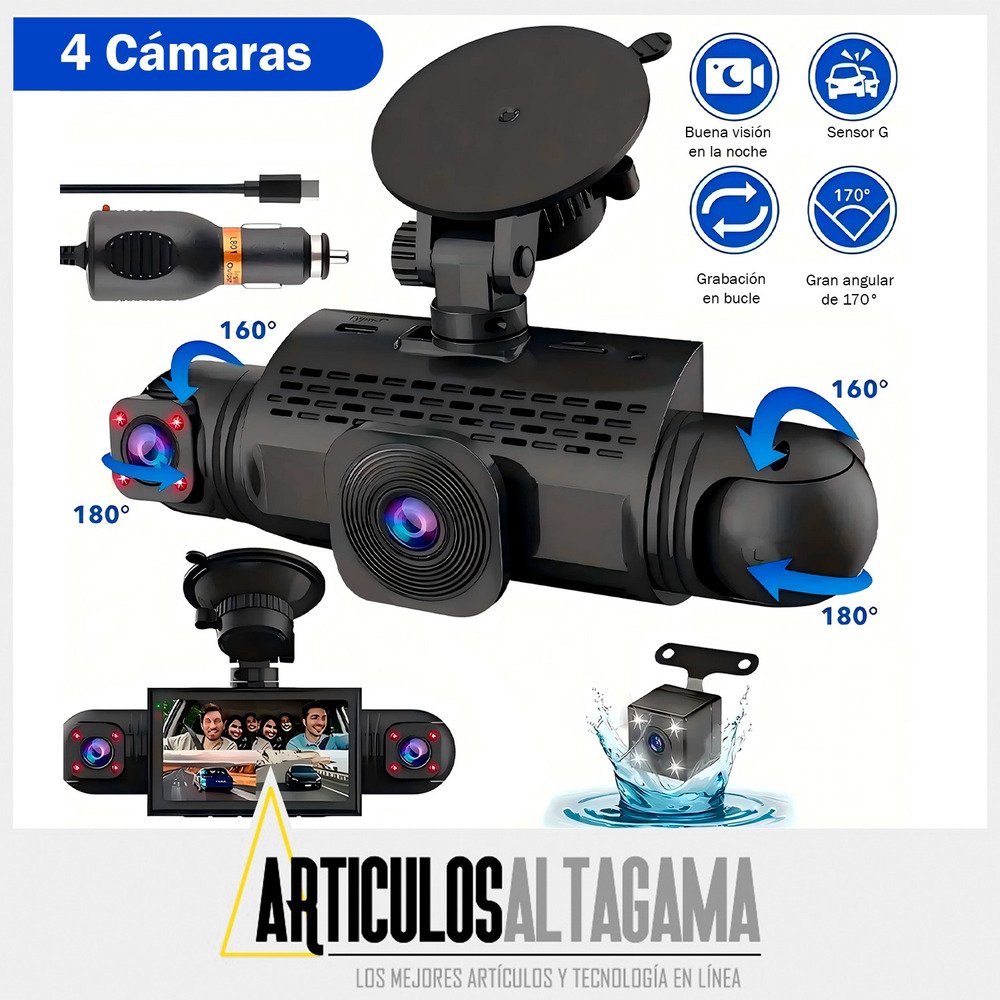 Captura cada momento en la vía con esta potente cámara DVR para carro de 4 canales, que graba en video Full HD y se conecta fácilmente. graba desde múltiples ángulos al mismo tiempo, ofreciendo una visión completa de lo que ocurre dentro y fuera del vehículo. Perfecta para viajes, vigilancia o uso profesional.
