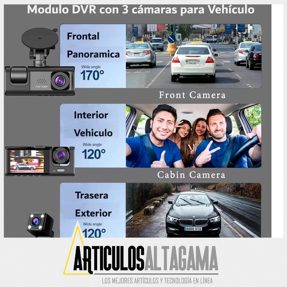 Cámara triple grabadora HD con DVR de seguridad para carro, ideal para tener una visión completa y grabación en alta definición desde distintos ángulos. Brinda mayor tranquilidad al conducir, registrando cada detalle en carretera o mientras el vehículo está estacionado. Su sistema con DVR facilita la reproducción de videos y la protección de tu vehículo ante cualquier incidente.