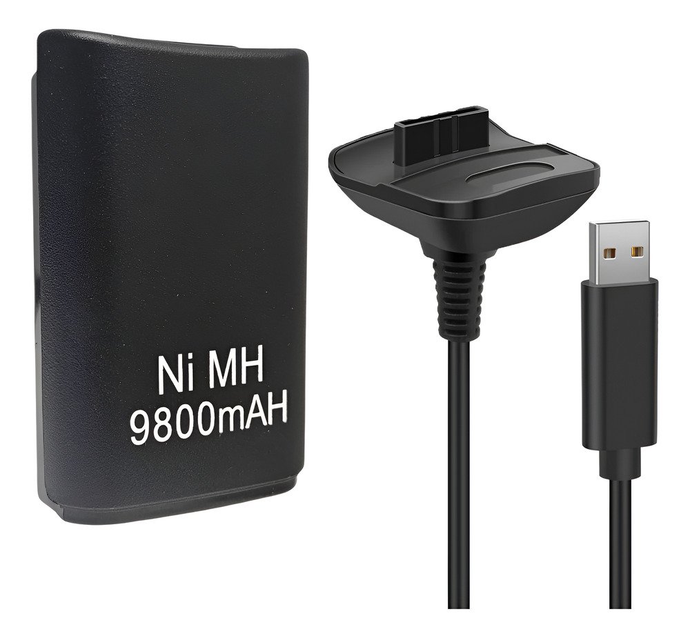 Cargador Kit Carga Y Juega para Xbox 360 batería de 9800mAh
