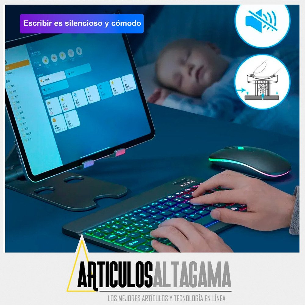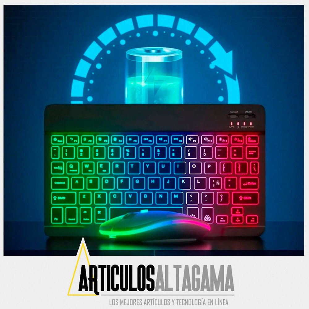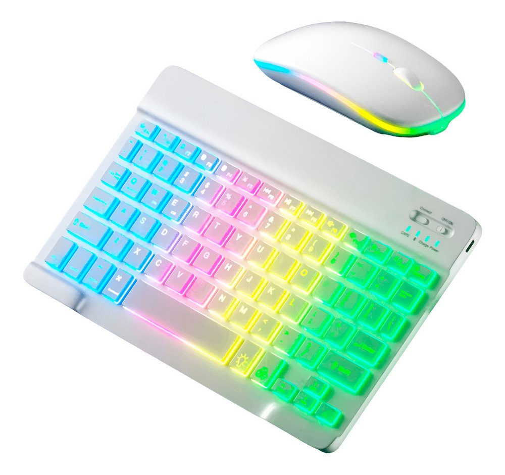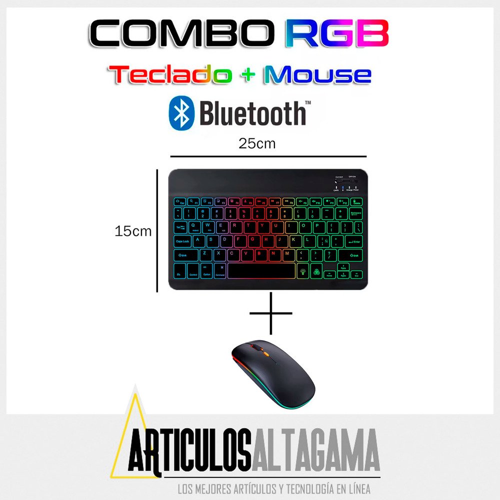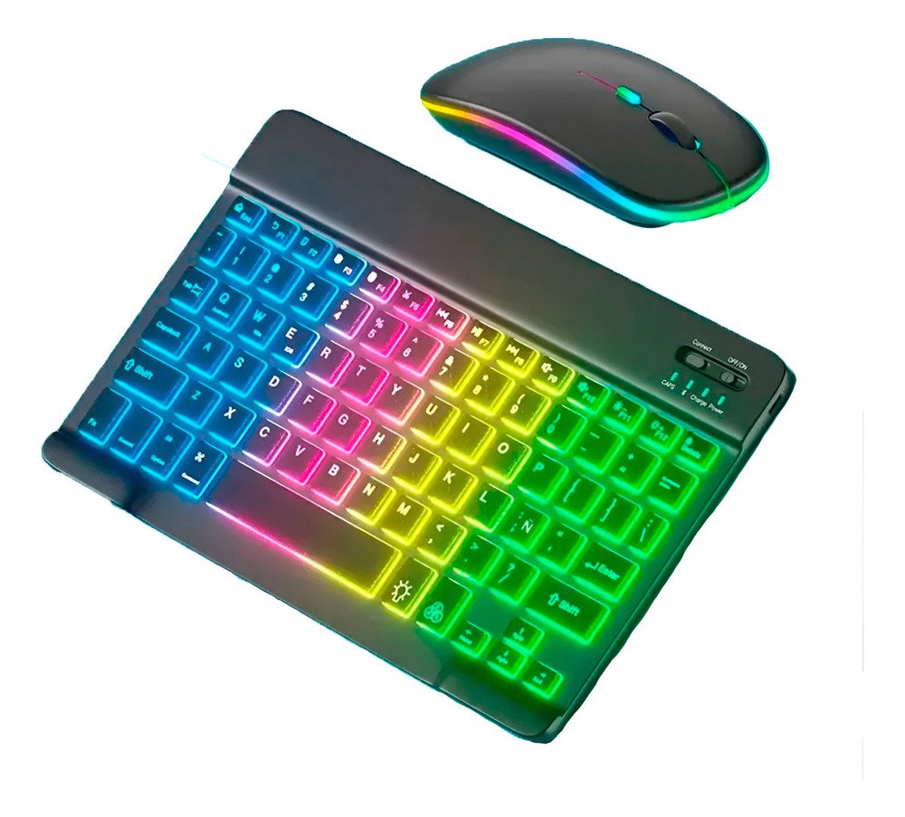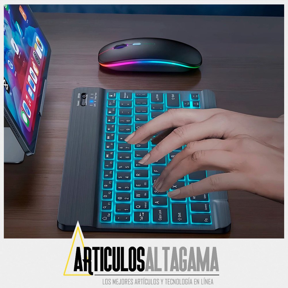 Con un diseño ultradelgado y elegante, este combo de teclado retroiluminado con función RGB y mouse inalámbrico 2 en 1 (Bluetooth y Wireless) es el compañero perfecto para tus dispositivos, ya sean tabletas o celulares con sistema operativo Mac, Android o Windows, también puedes usarlo con TV con estos sistemas operativos o puedes conectarlo en computadores para pasar presentaciones o manipularlo desde la distancia.