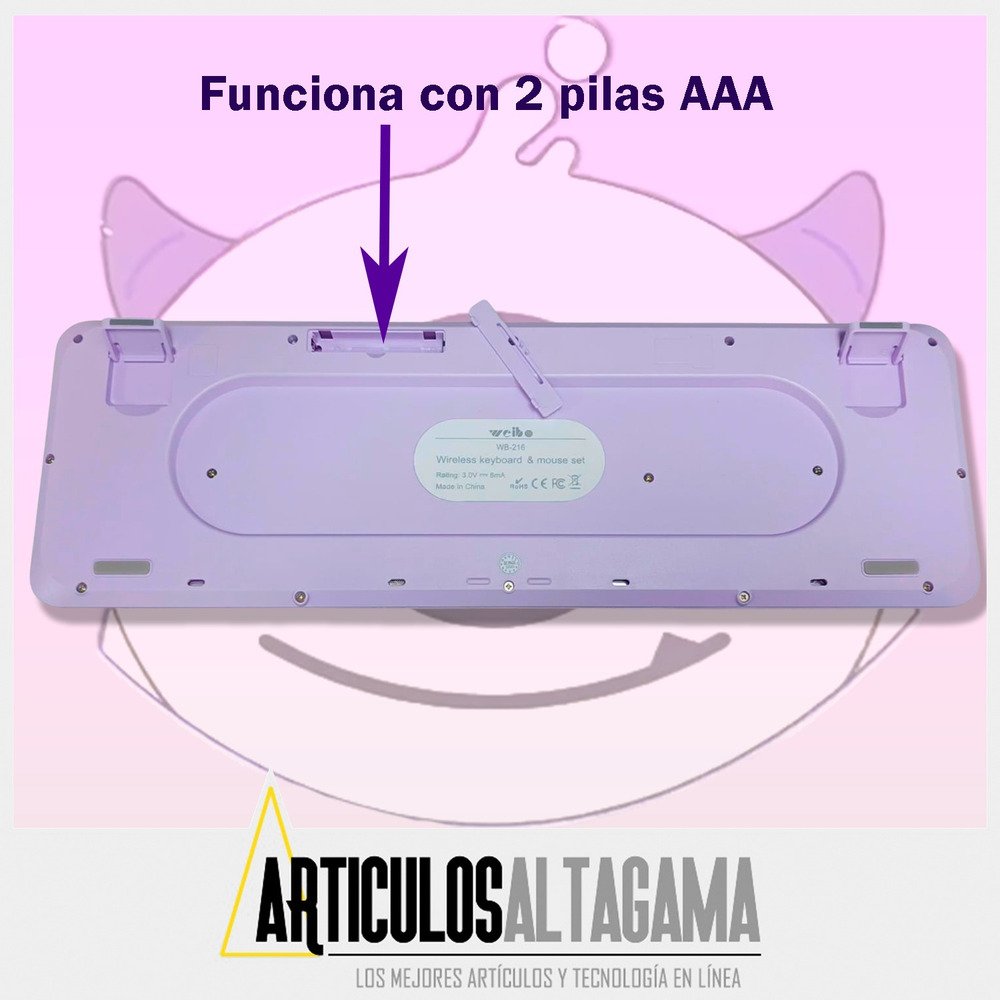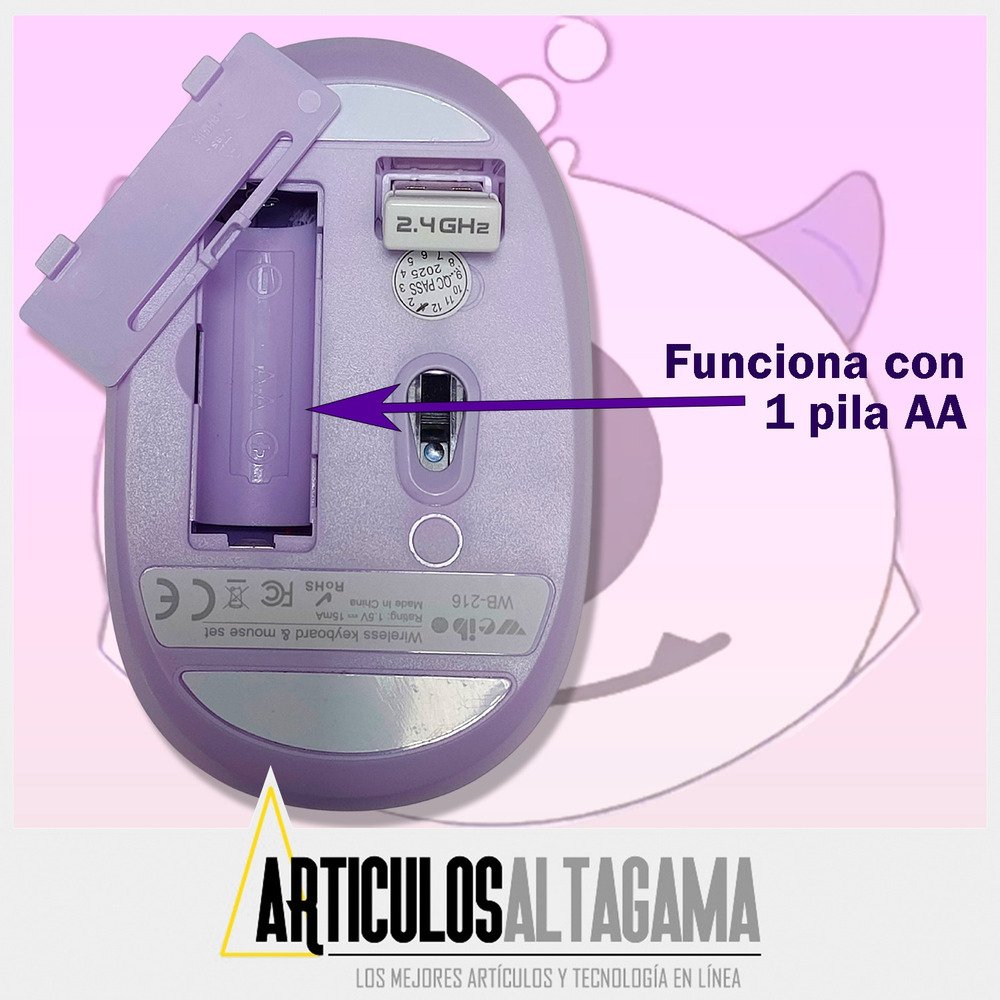 – Carga el teclado con 2 pilas AAA y el Mouse con 1 pila AA (NO incluye pilas)