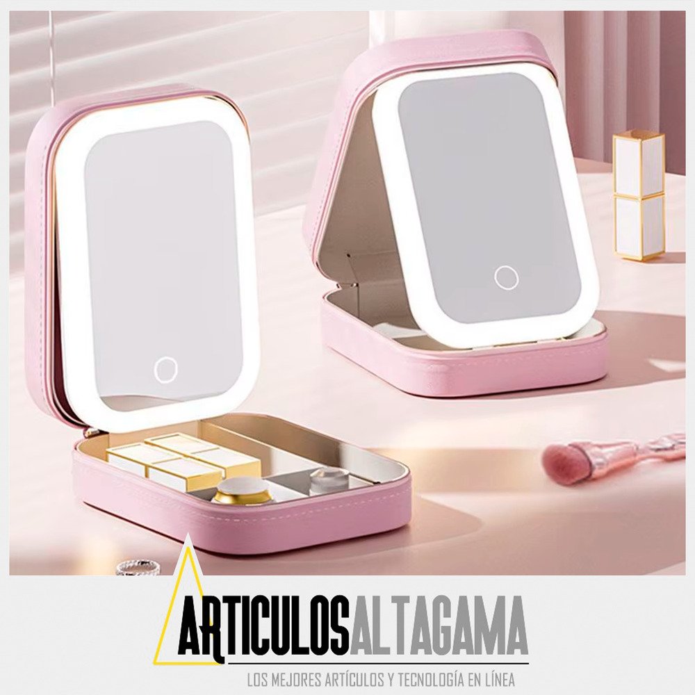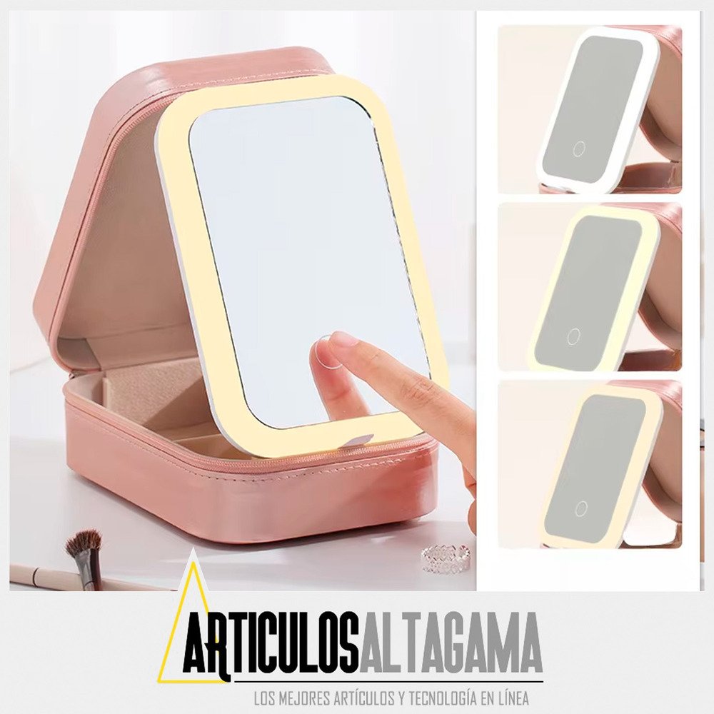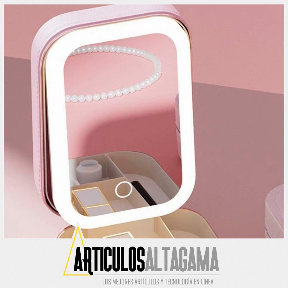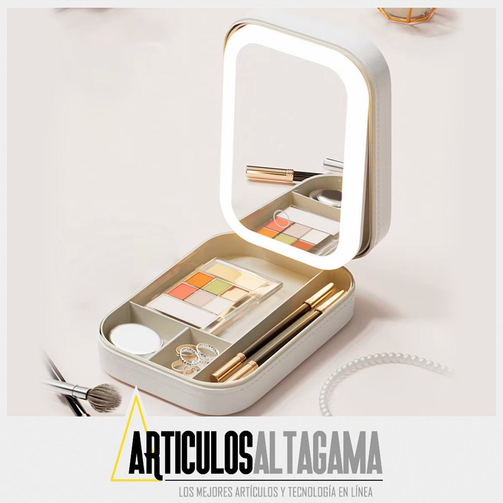 Cosmetiquera organizador Maquillaje pequeña Espejo Luz Led