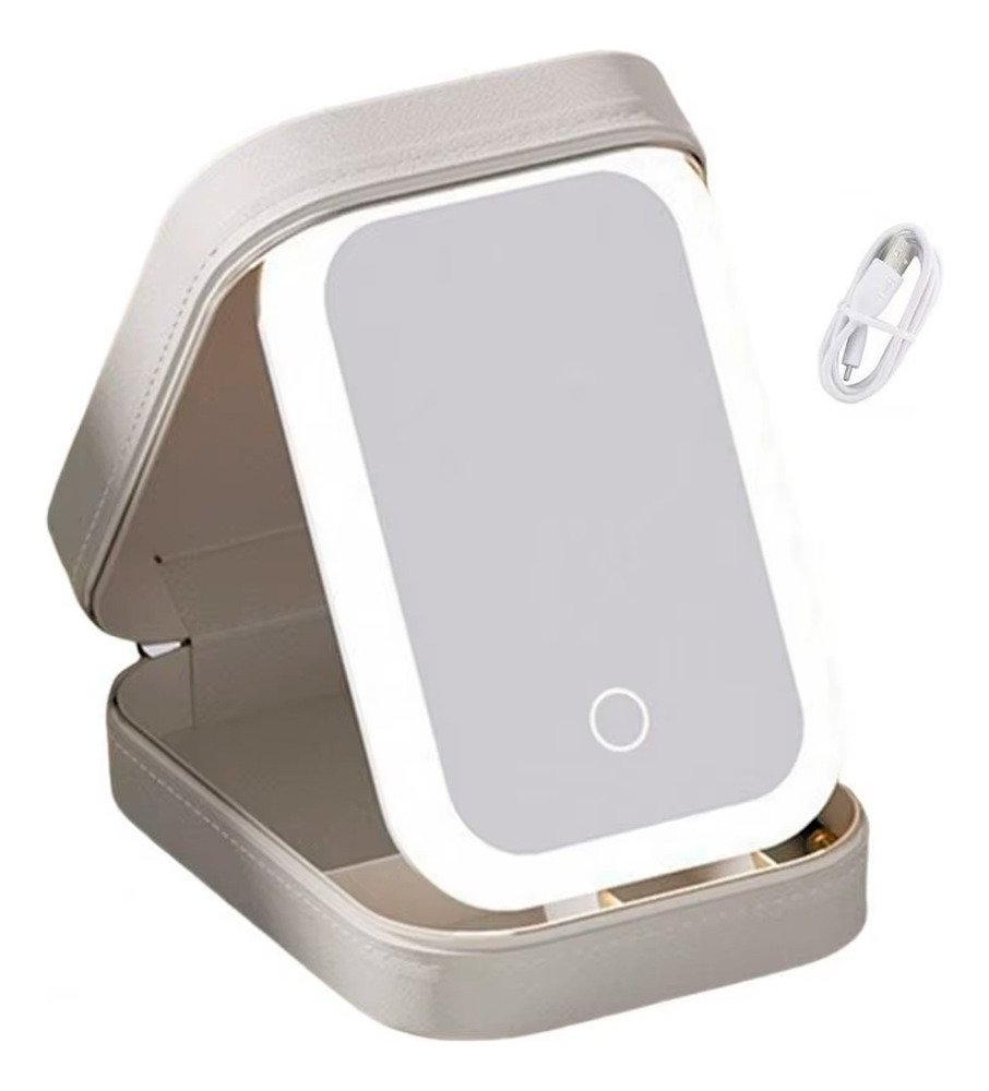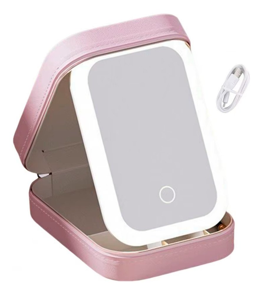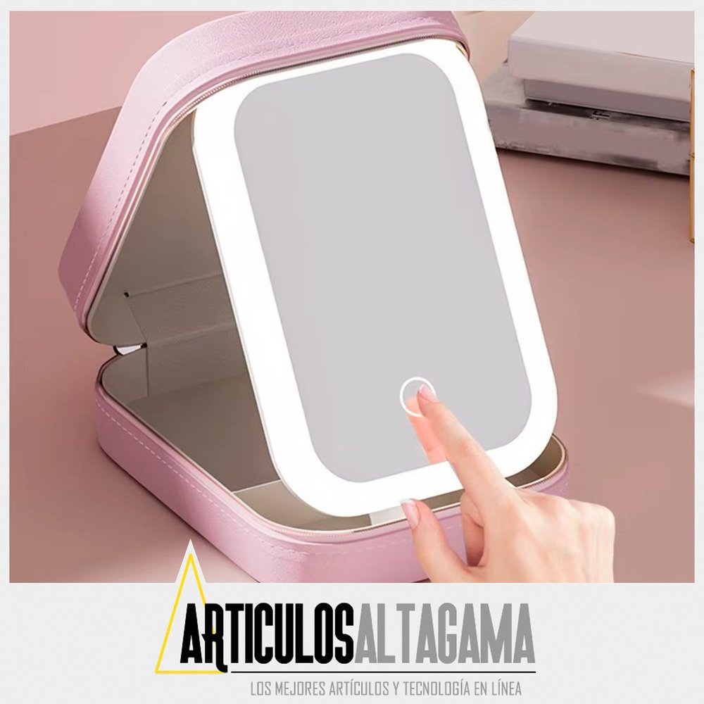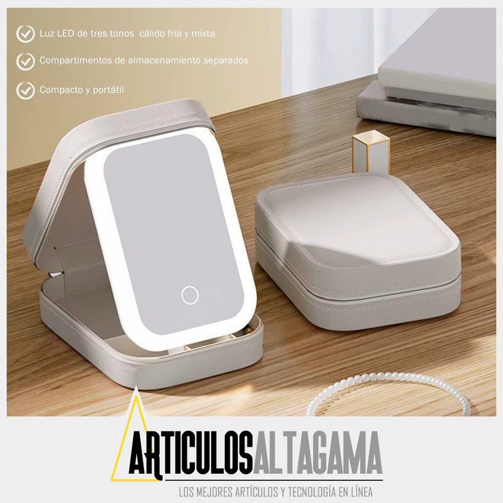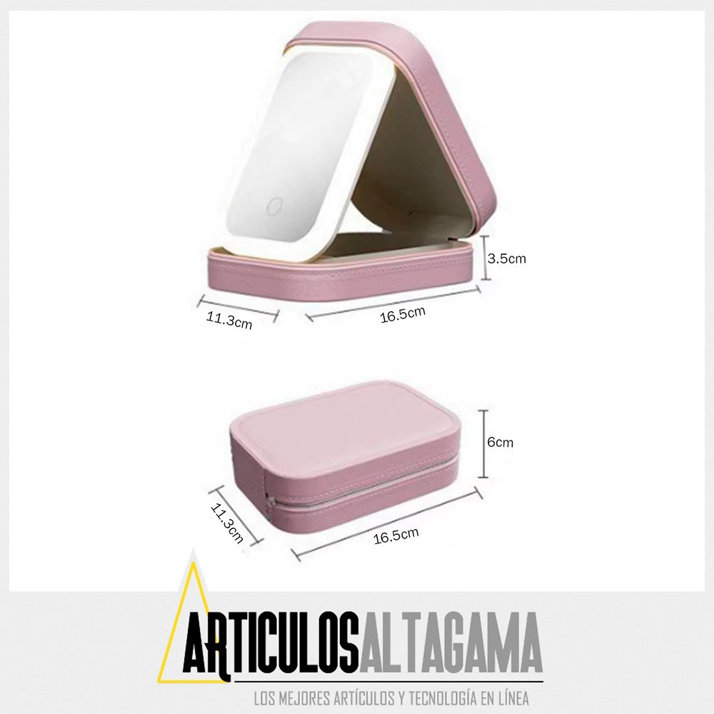 Cosmetiquera organizador Maquillaje pequeña Espejo Luz Led