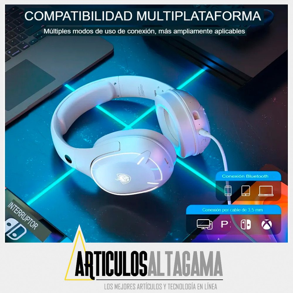 Lleva tu experiencia de juego al siguiente nivel con la Diadema Gamer Bluetooth PHOINIKAS Q6S, equipada con luces LED vibrantes que le dan un estilo único y envolvente. Disfruta de un sonido potente y envolvente con su micrófono que puedes poner o retirar, ideal para comunicarte con claridad durante tus partidas. Su diseño ergonómico y conexión inalámbrica te ofrecen libertad total de movimiento y comodidad durante largas sesiones de juego.