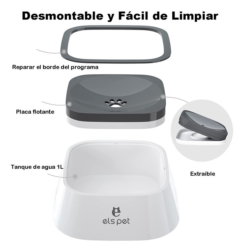 Tazón antiparasitario: su diseño sin bordes y con bandeja flotante previene derrames y ayuda a mantener el área circundante seca y ordenada.
