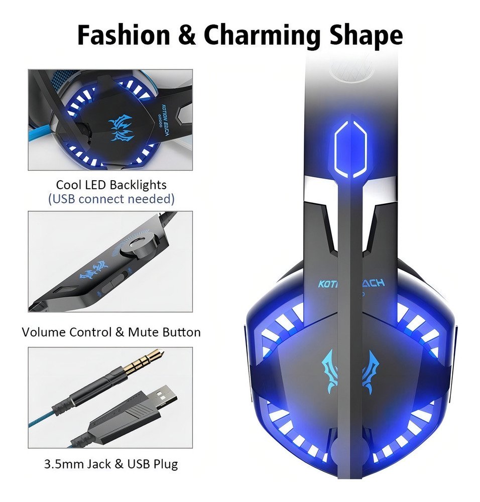 Auriculares Gamer Kotion G2000 Over-ear Negro/azul Ps4 Xbox One Jack 3.5mm