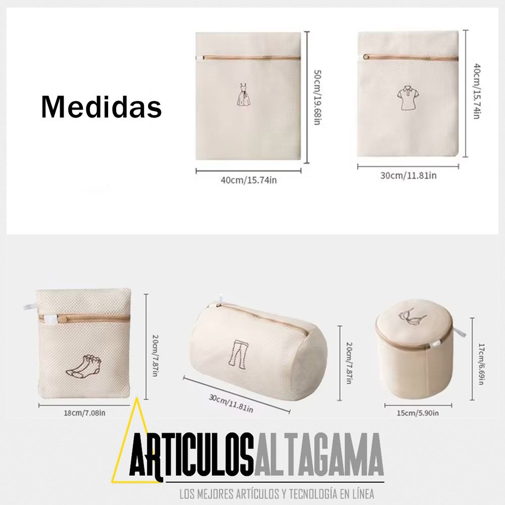 – Set completo de 5 bolsas de lavandería con cierres de cremallera resistentes.