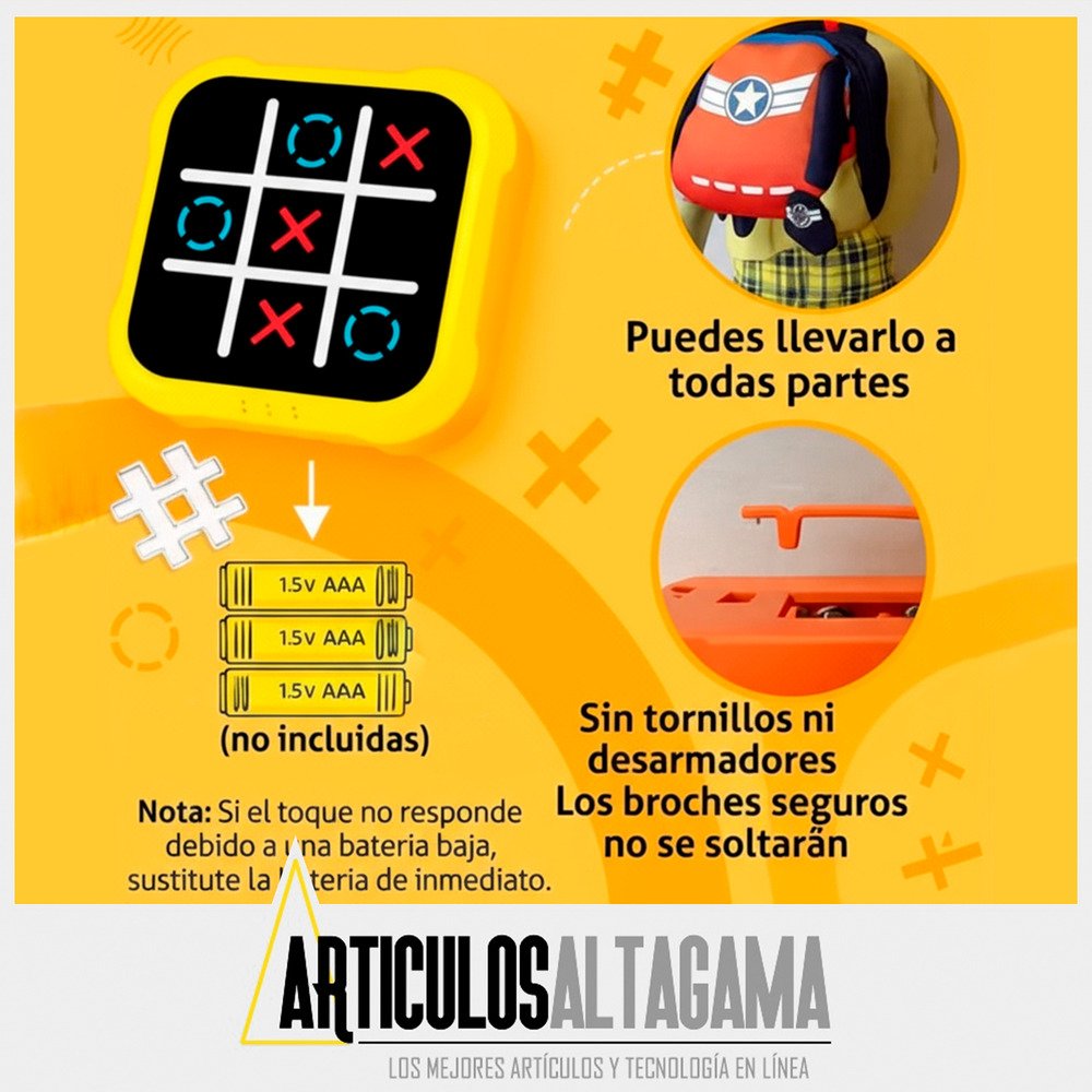 Revoluciona la forma de jugar el clásico Triki, con una versión digital más dinámica e interactiva. Diseñado para todas las edades, combina entretenimiento y desarrollo mental en una sola experiencia. Sus luces y sonidos hacen que cada partida sea más emocionante, mientras estimulas la lógica, la concentración y la estrategia. Ideal para jugar solo, en familia o con amigos, y perfecto para viajes o reuniones gracias a su tamaño portátil.