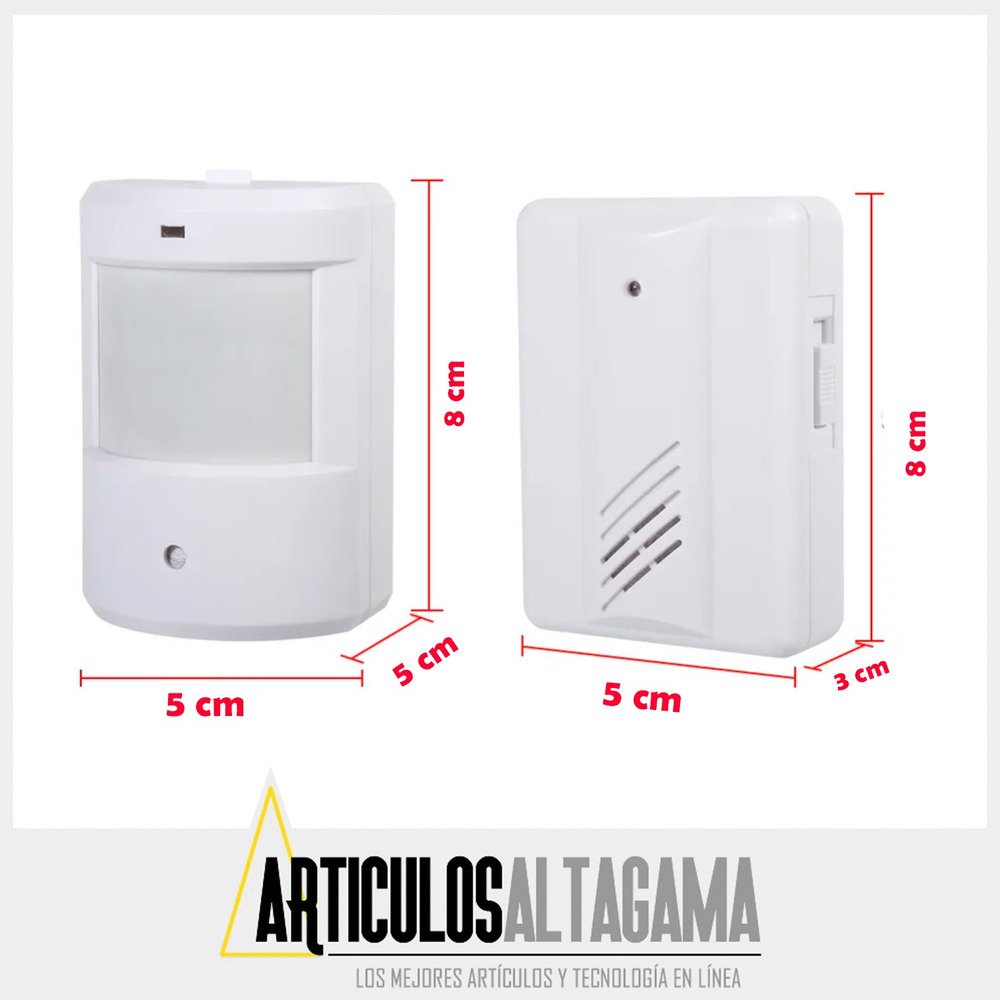 -El sistema inalámbrico infrarrojo le avisa en el momento en que alguien entra en su propiedad. Con este sistema, siempre tendrás un aviso previo de que alguien está en camino a tu puerta. Unidad de sensor de movimiento compacta y discreta que se instala en GARAJE, buzón, poste de cerca, etc. casi en cualquier lugar. Y cuando se activa, envía una señal inalámbrica a la unidad receptora, ¡hasta 400 pies de distancia! Cuando el timbre ajustable de la unidad le indique que está a punto de recibir una visita, puede prepararse en consecuencia. La unidad también funciona muy bien para las pequeñas empresas. Puede recibir una alerta cuando un cliente llegue a su tienda o garaje. Se instala en minutos, sin necesidad de herramientas; completamente inalámbrico; te avisa de visitantes, intrusos, entregas y más