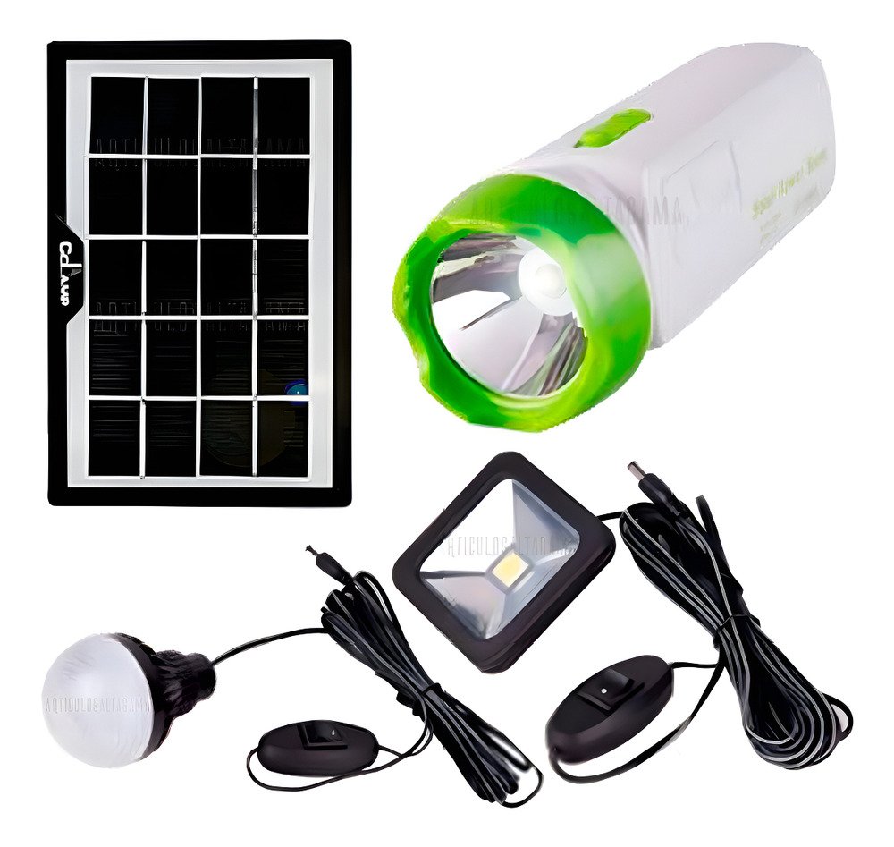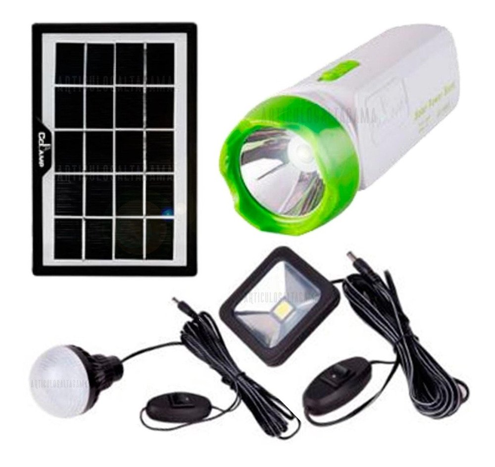 Kit Linterna Recargable 3w Portátil Liviana Con Panel Solar