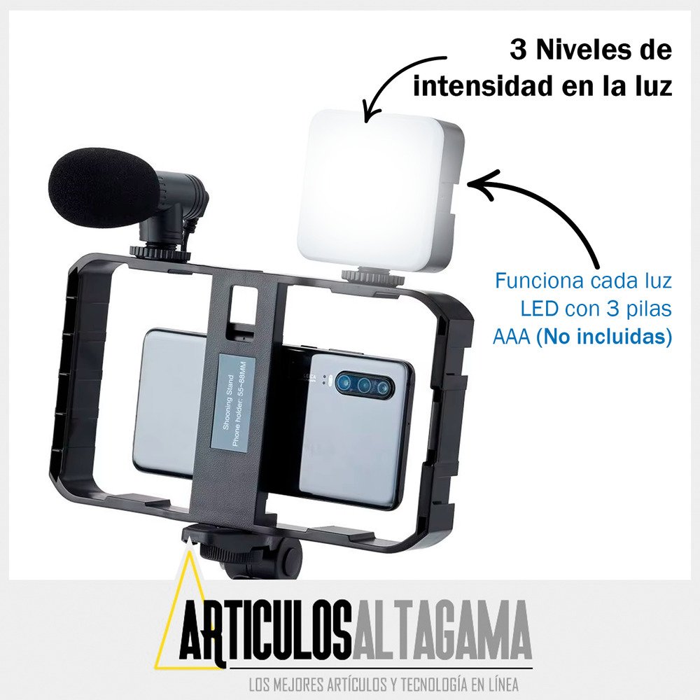 Kit Para Foto Video espacio para Micrófono 2 Luz LED Control