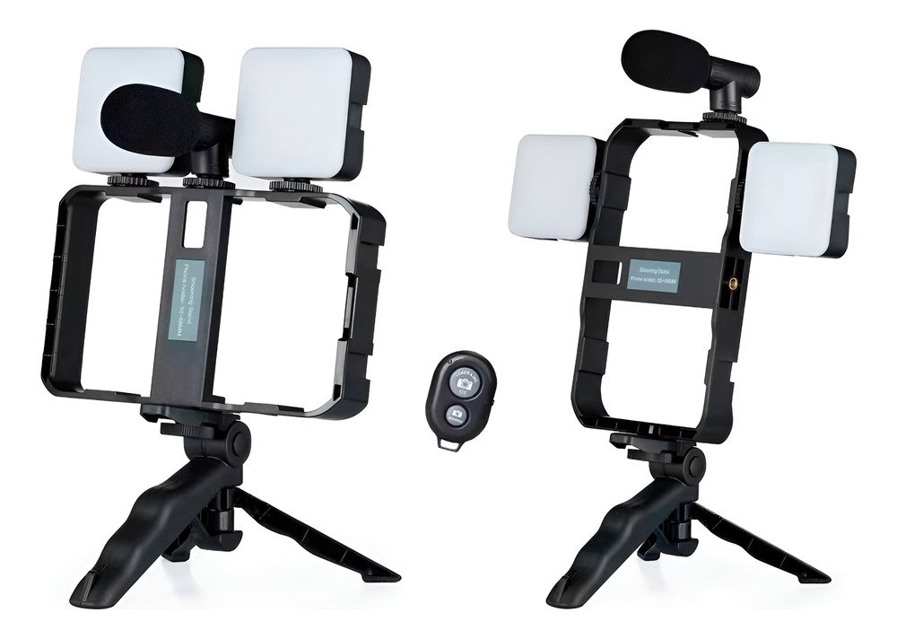 Con este práctico kit para foto y video podrás llevar tu contenido al siguiente nivel. Incluye espacio para instalar un micrófono externo, dos luces LED de alta potencia y un control que facilita el manejo, ofreciendo una iluminación uniforme y una mayor calidad en cada grabación. Su diseño portátil y fácil de montar lo hace ideal para creadores de contenido, transmisiones en vivo, entrevistas o grabaciones profesionales.