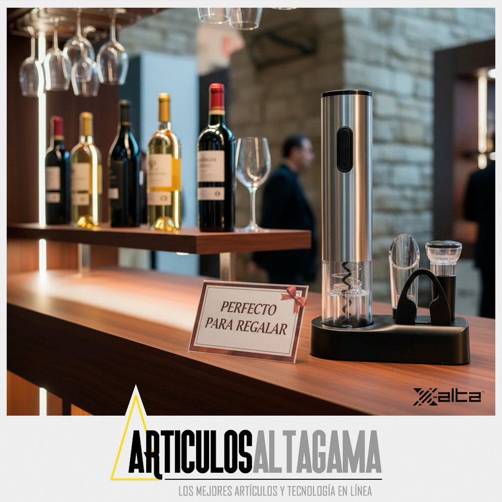 – Descorchador eléctrico: funciona con pilas para abrir botellas sin esfuerzo.