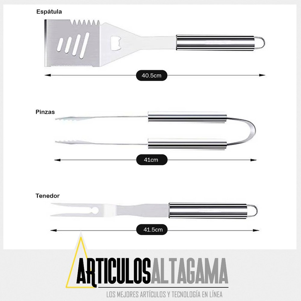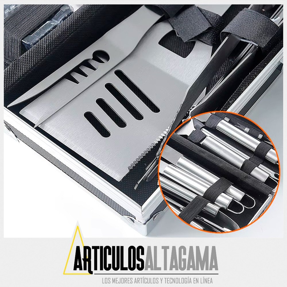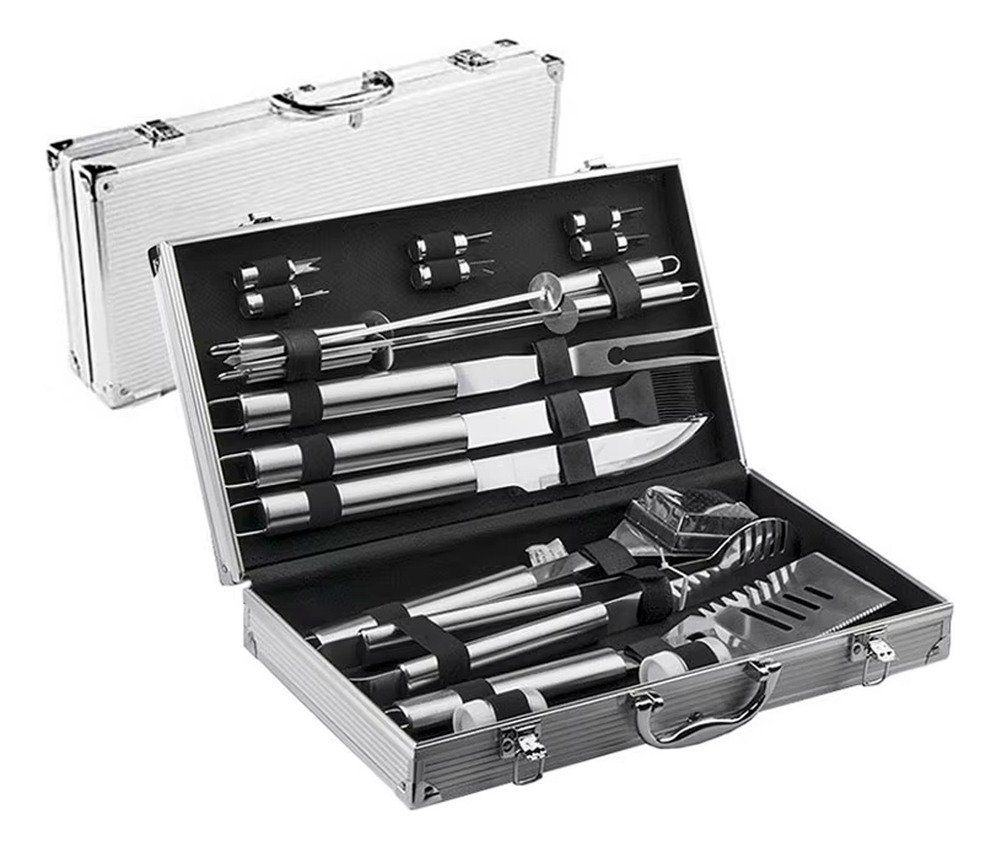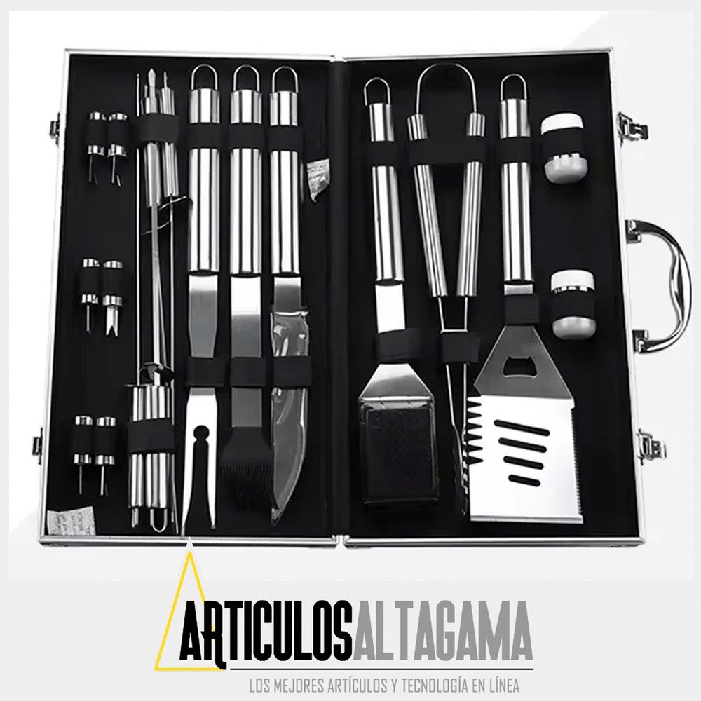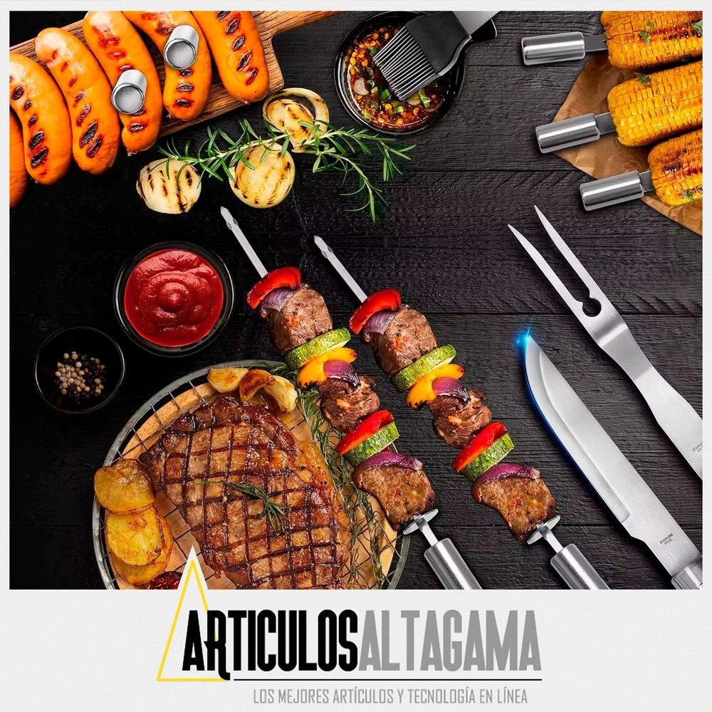 1 – Kit Parrillero 18 Utensilios En Acero Inoxidable