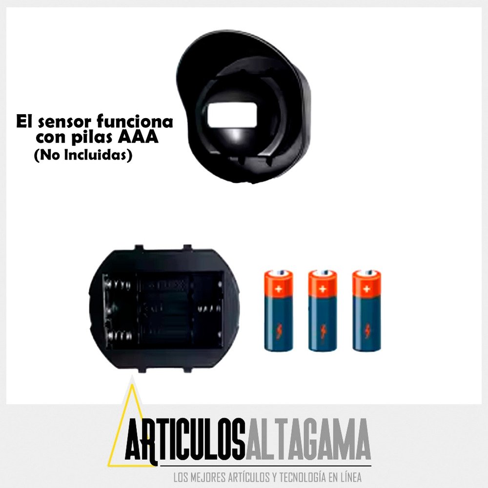 – El sensor de movimiento utiliza 3 pilas AAA (NO incluidas, se recomienda usar alcalinas de buena calidad). Las pilas pueden durar más de dos meses, puede variar de acuerdo al uso.