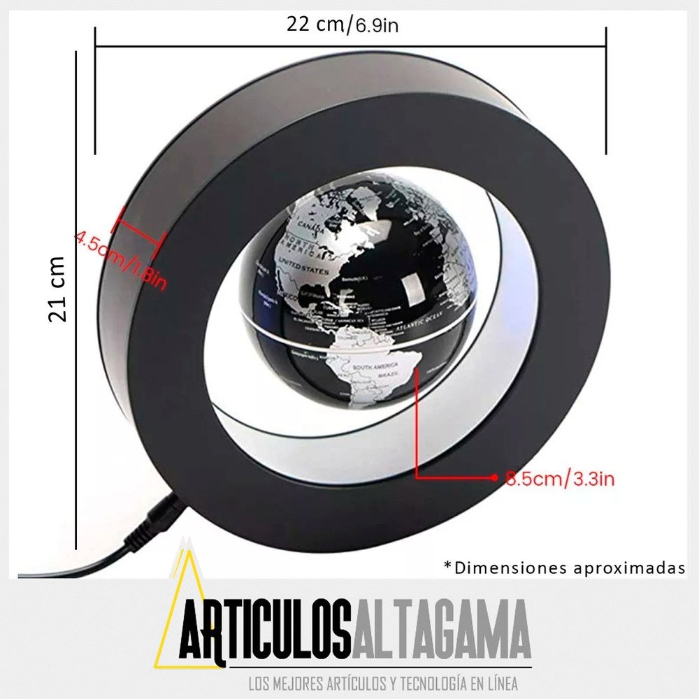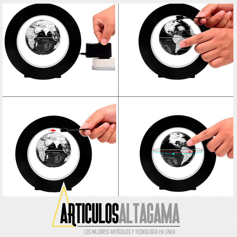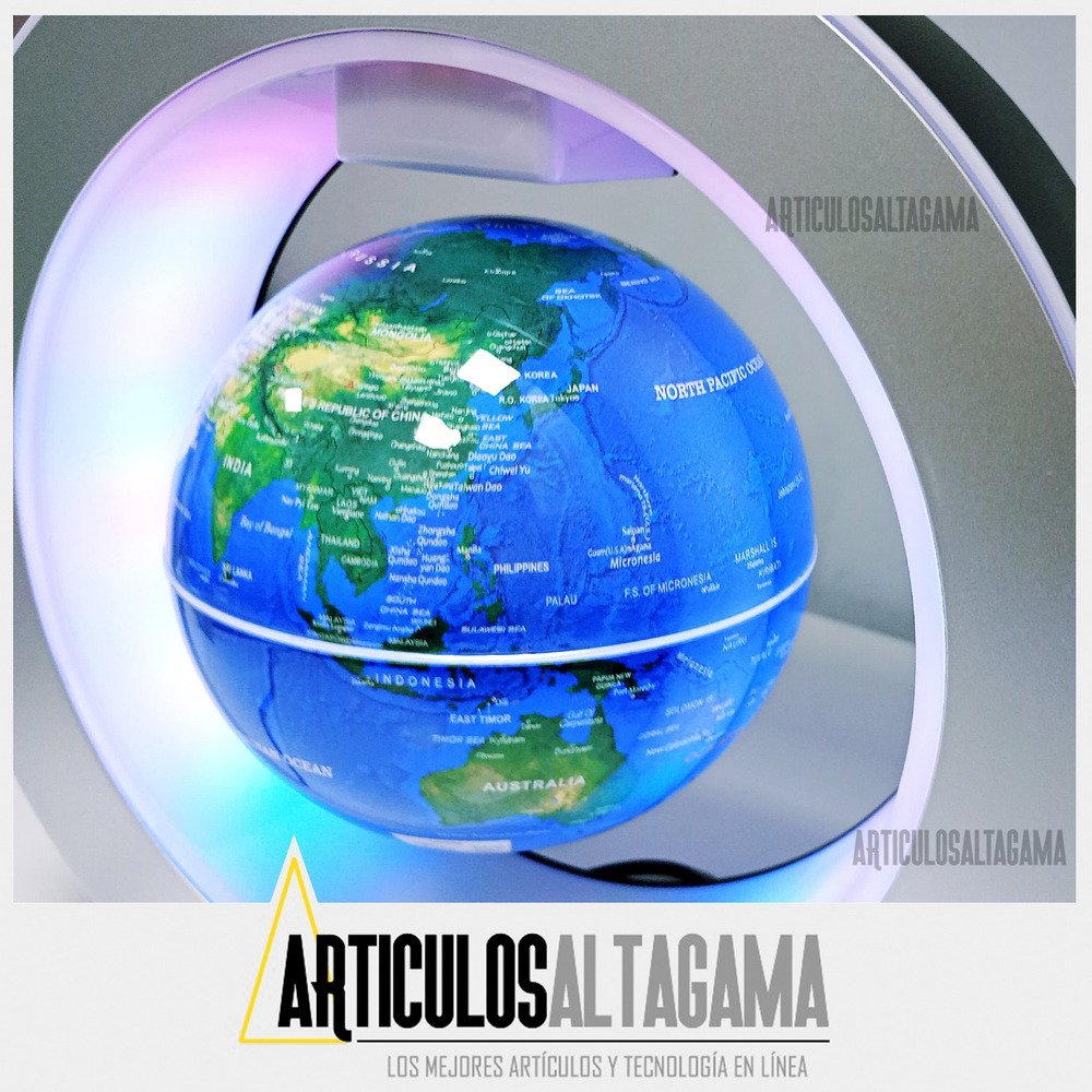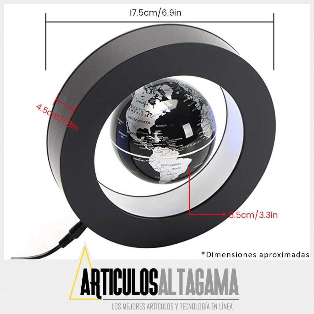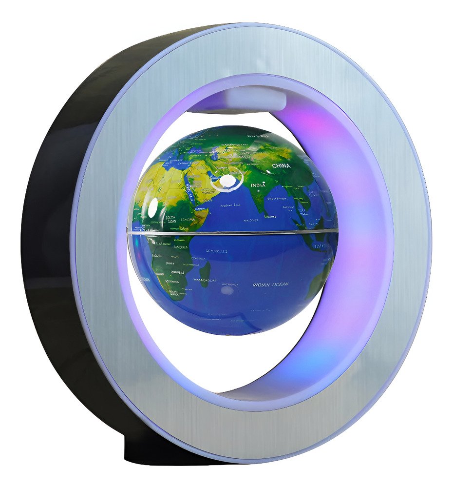 Este globo terráqueo se suspende en el aire por tecnología magnética y gira mientras flota. Apenas creerás que sea posible hasta que lo veas con tus propios ojos. Este globo hipnotizante se vera muy bien en tu escritorio de trabajo, mesa auxiliar, sala de estudio o cualquier habitación.