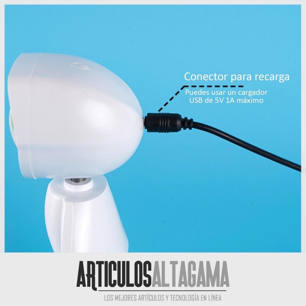 NOTA: NO incluye cargador, solo el cable de conexión. Puedes usar un cargador de celular que sea de 5V 1A máximo o un puerto USB de computador.