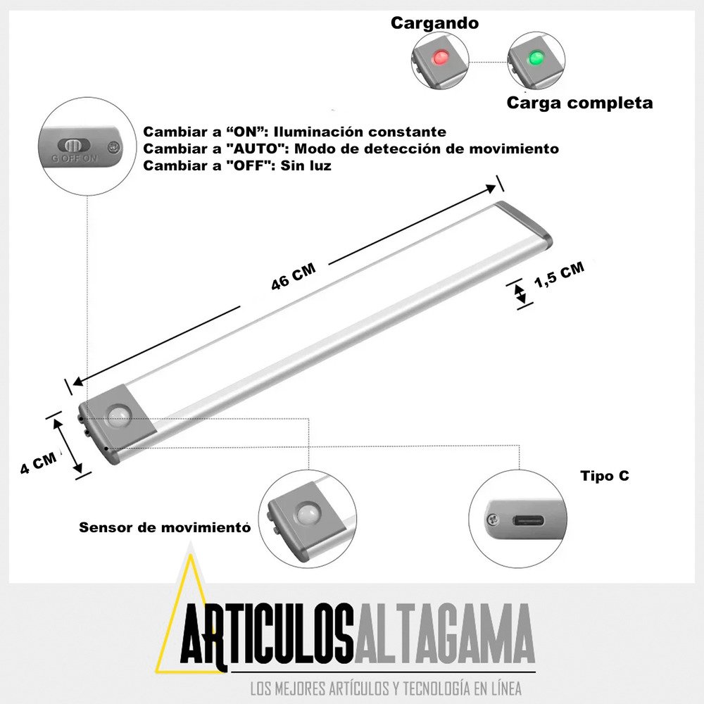 Esta lámpara es ideal para iluminar armarios, cajones y cualquier espacio similar de manera perfecta y conveniente. Puedes ajustar fácilmente la intensidad de la luz según tus necesidades, y su sensor de movimiento asegura una visualización óptima al activarse automáticamente. Además, su diseño permite que la puedas quitar con facilidad para recargarla o llevarla a otro lugar donde necesites iluminación instantánea.