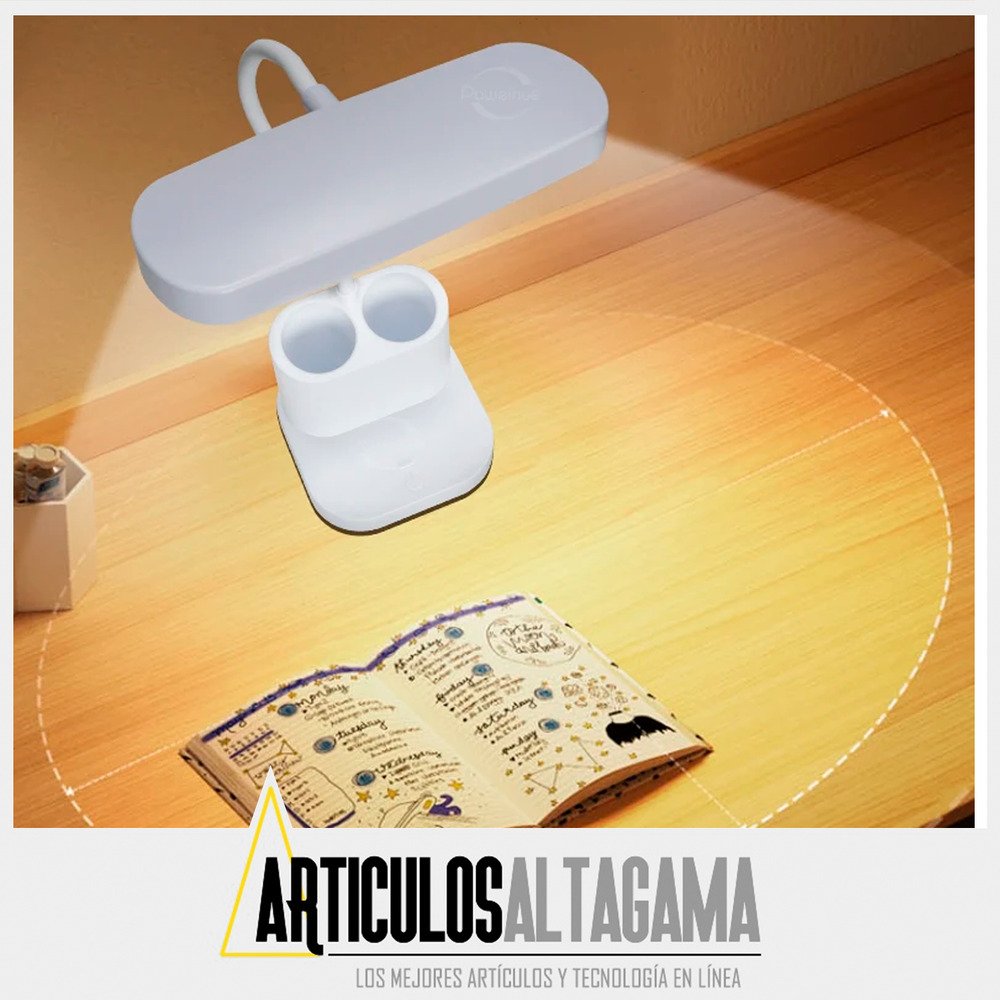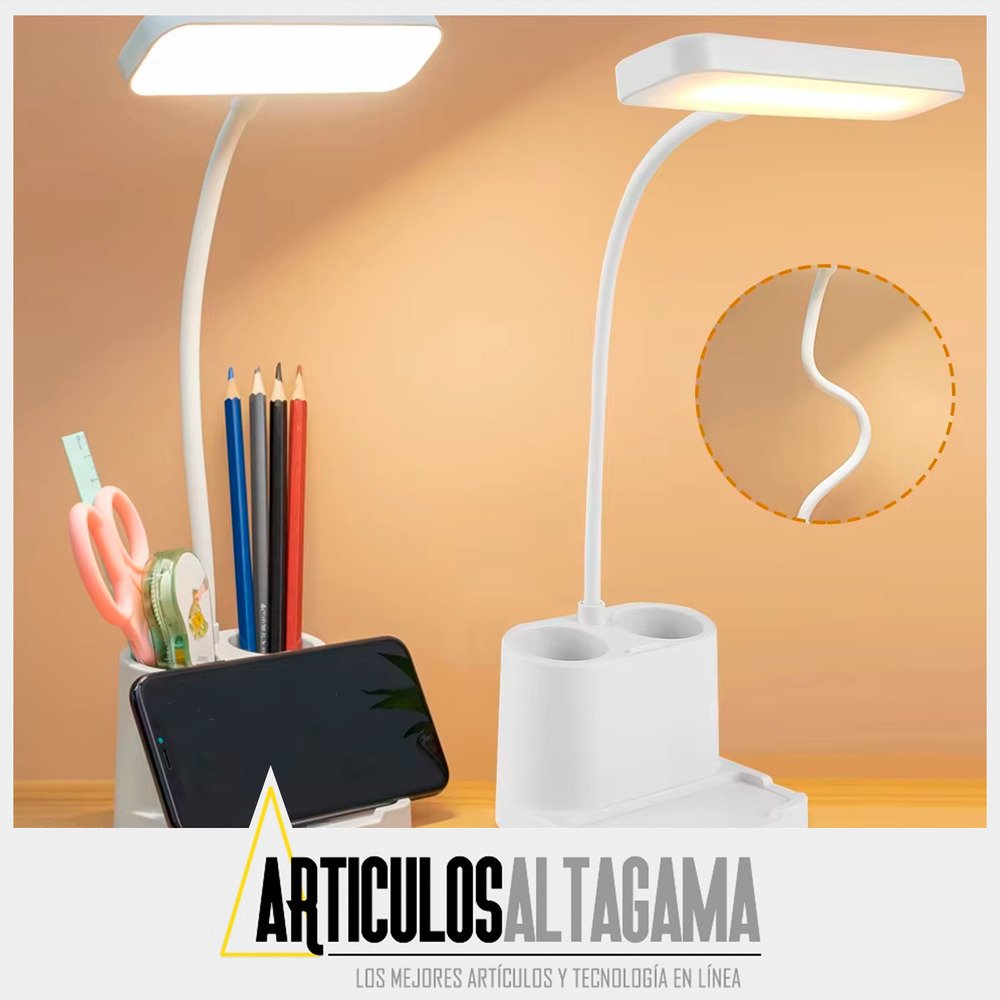 Lámpara LED recargable con cuello flexible, ilumina perfectamente tu escritorio o mesa de noche, al ser recargable la puedes llevar donde sea que vayas.