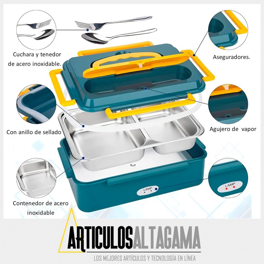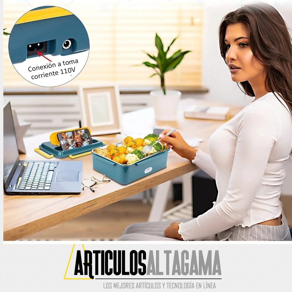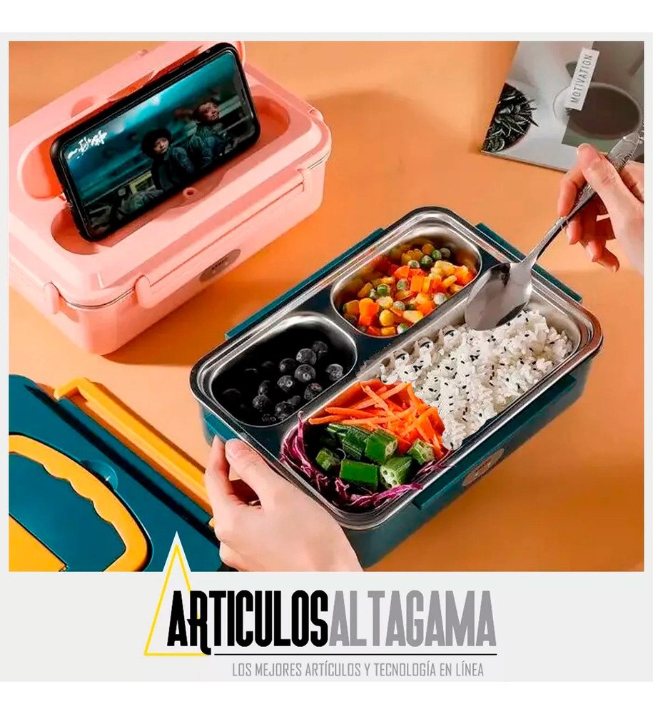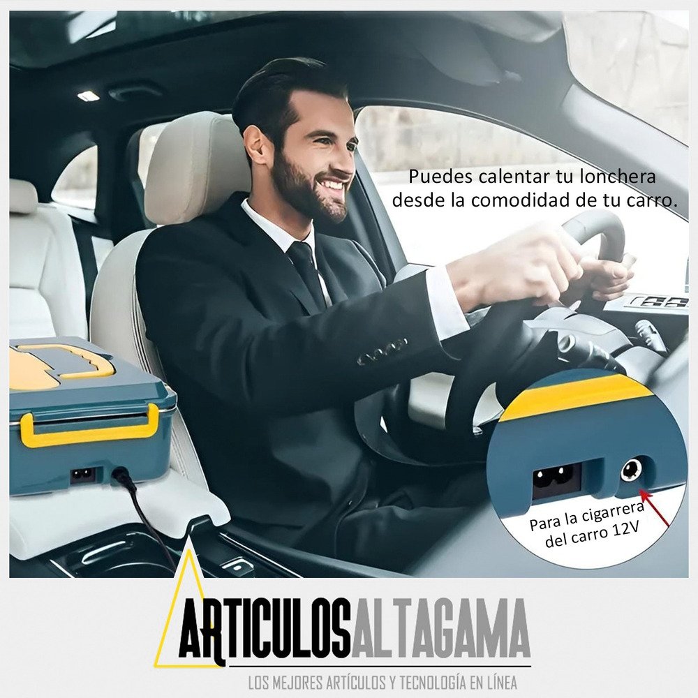 Esta increíble lonchera te permitirá disfrutar de tu comida favorita en el instante y lugar que desees, sólo debes conectarla a un enchufe casero a 110V o a la toma de cigarrera de un carro a 12V y listo.