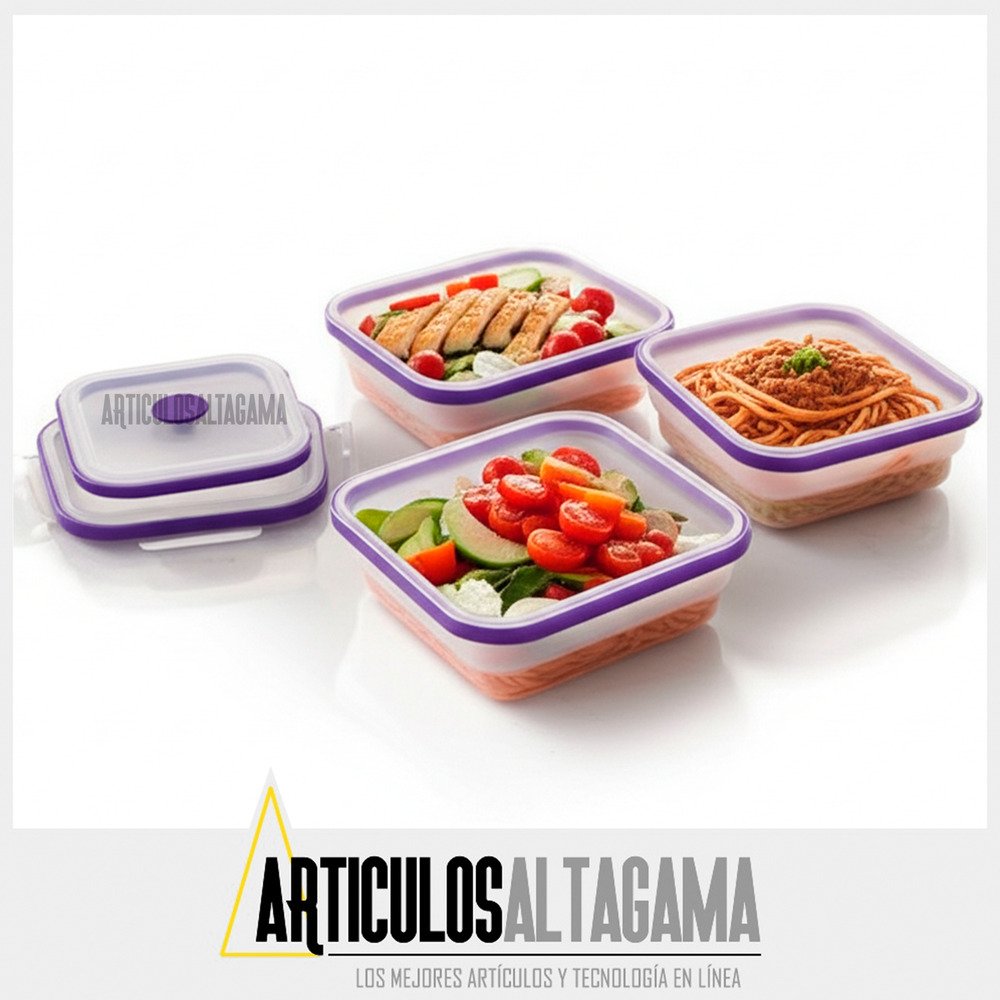 – Material de calidad: recipientes fabricados en plástico y silicona, seguro para alimentos.