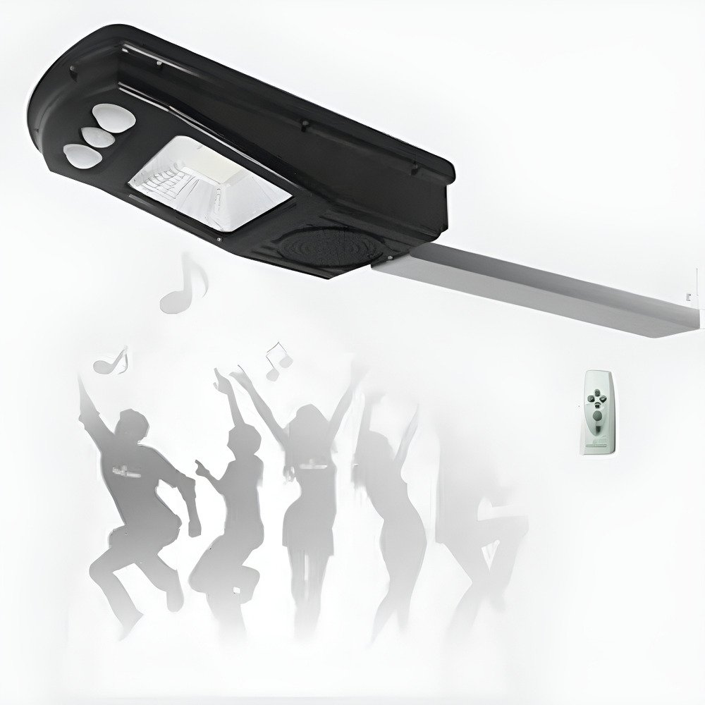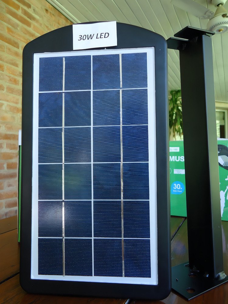 Es una luminaria tipo calle con panel solar incluido y detector de movimiento. También cuenta con foto célula con Bluetooth y control remoto. Ideal para iluminar jardines, piscinas, patios, cenas al aire libre, camping, motor home.
