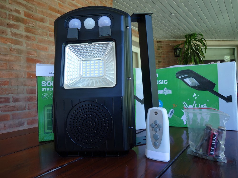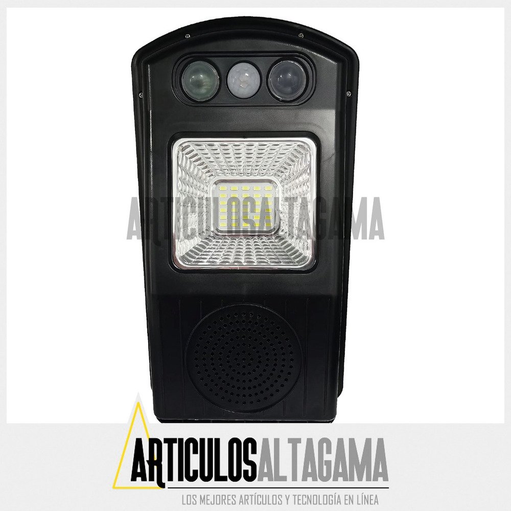 Tiene un parlante con excelente potencia de sonido. Se enciende cuando detecta movimiento y hay ausencia de luz. Es resistente al agua y carga a pleno sol. Es ultra liviano y resistente.