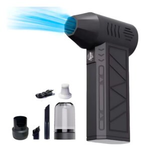 Este mini soplador eléctrico de chorro seco cuenta con excelentes rodamientos de alta velocidad, una turbina de metal, un motor sin escobillas y un diseño de boquilla con clip, lo que garantiza eficiencia, potencia y durabilidad.