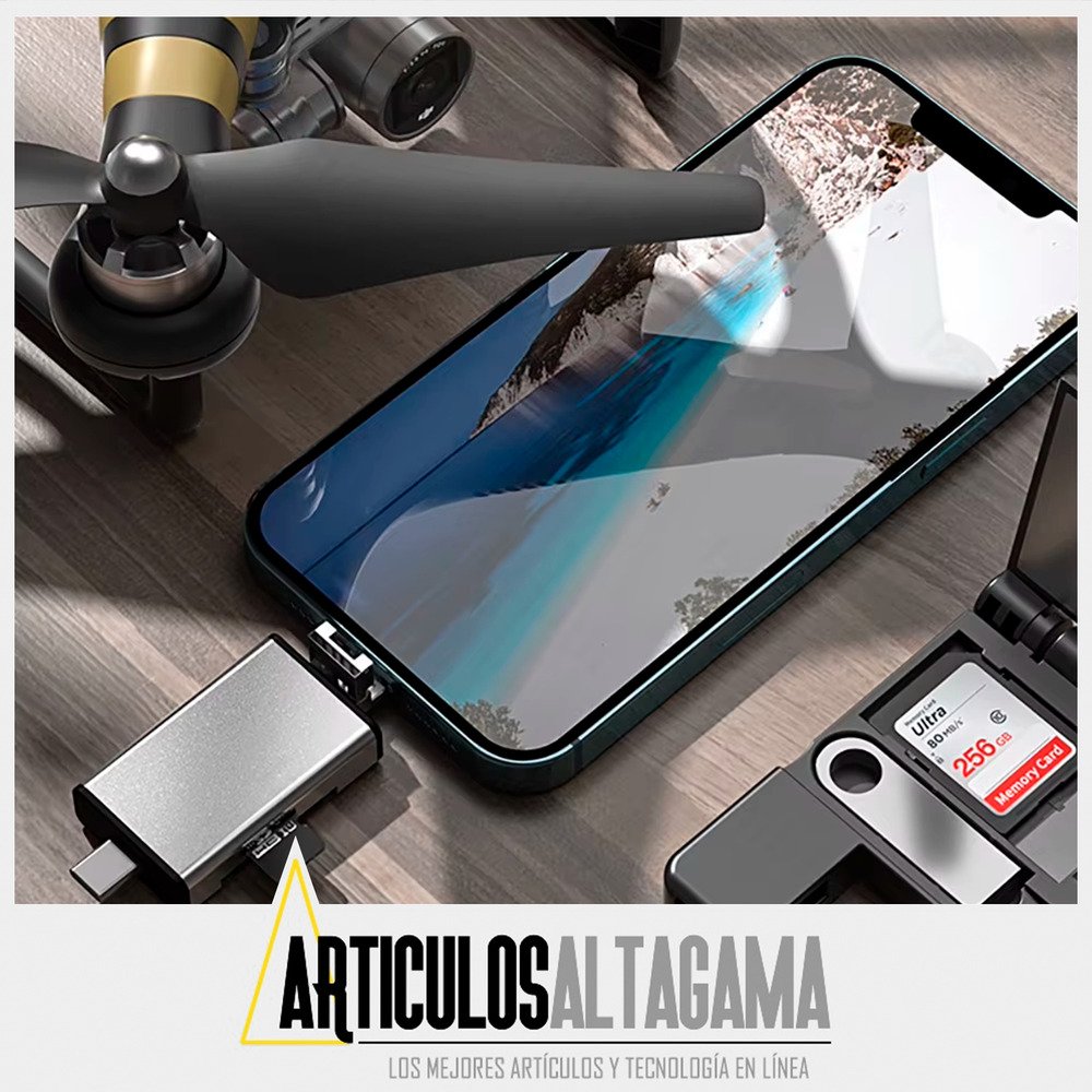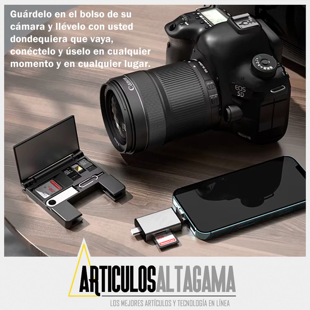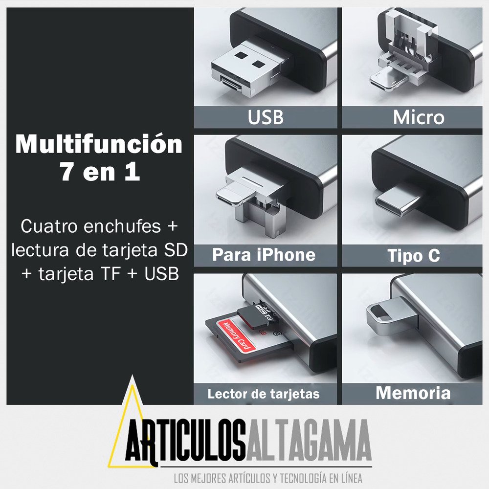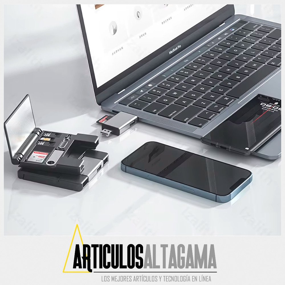 Lleva tu experiencia de transferencia de datos al siguiente nivel con este lector de tarjetas múltiple 7 en 1, compatible con SD, TF, y micro tarjetas, y con conexión USB-C 3.0. Perfecto para iPhone, cámaras Android y Windows, te permite leer y transferir archivos de manera rápida y sin complicaciones gracias a su tecnología Plug & Play. Su diseño compacto y versátil es ideal para quienes buscan una solución todo en uno, sin importar el dispositivo.