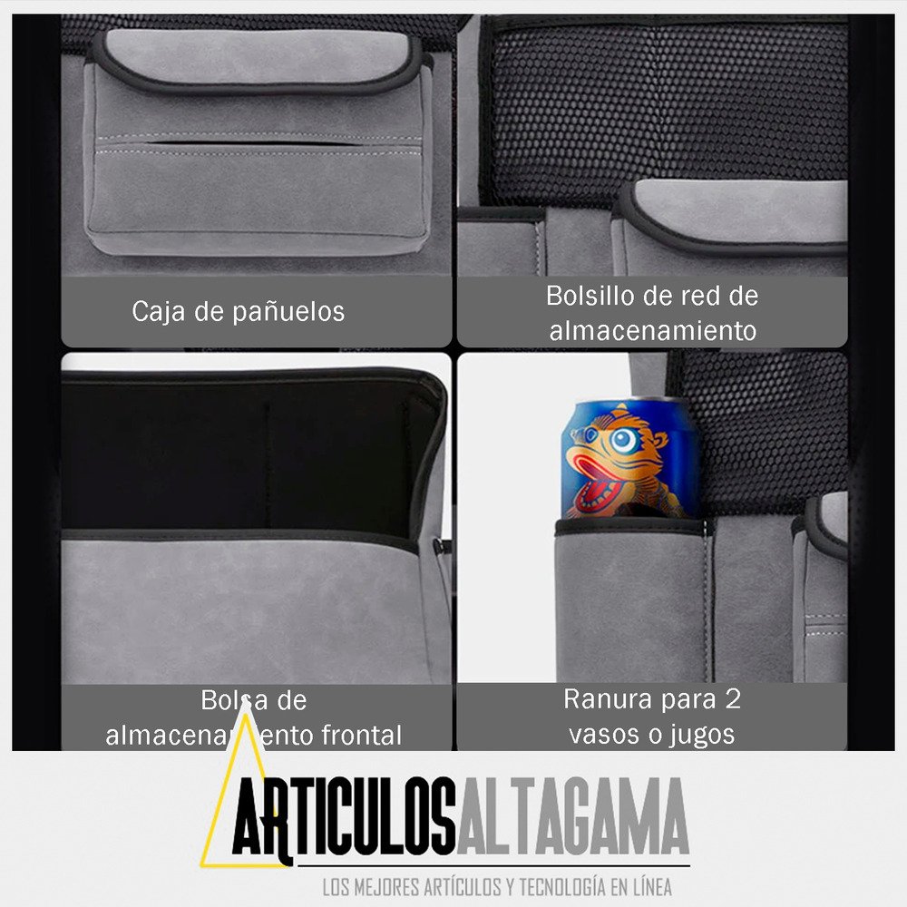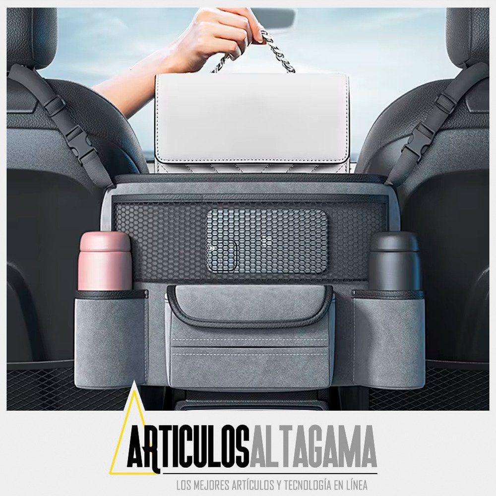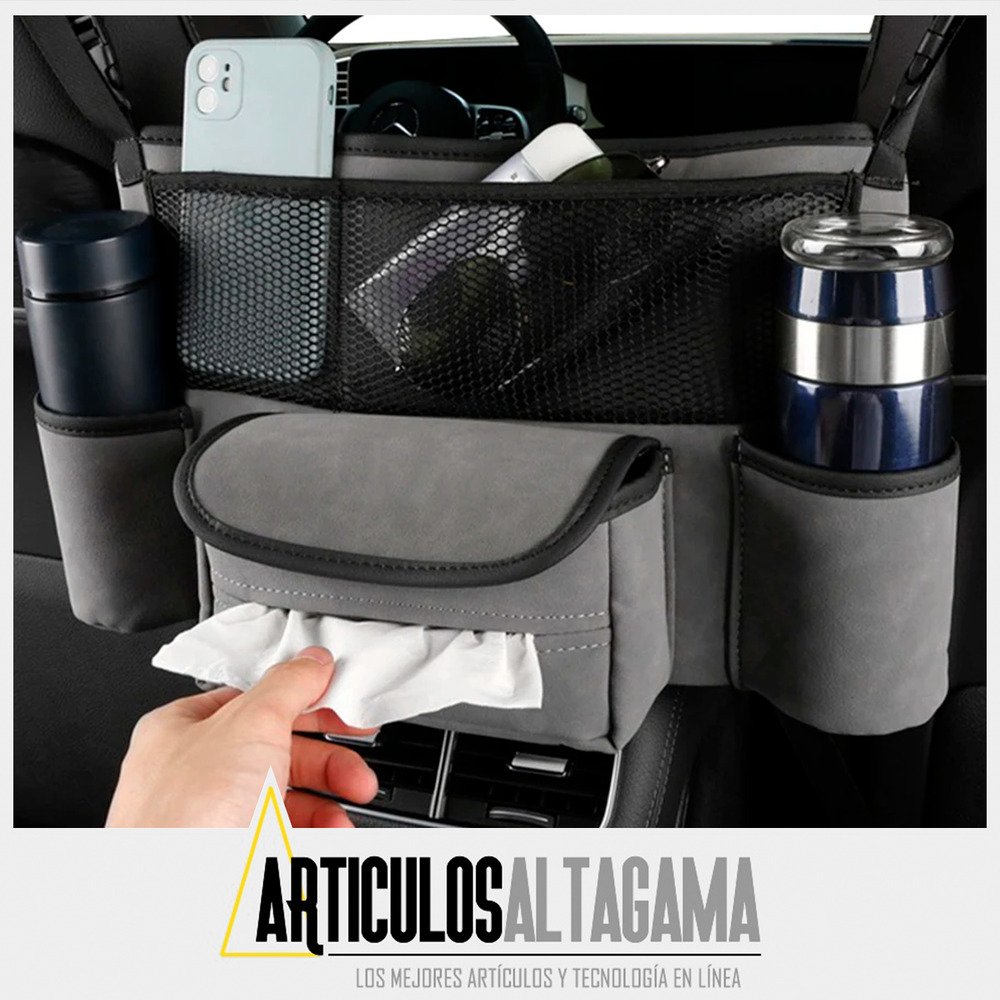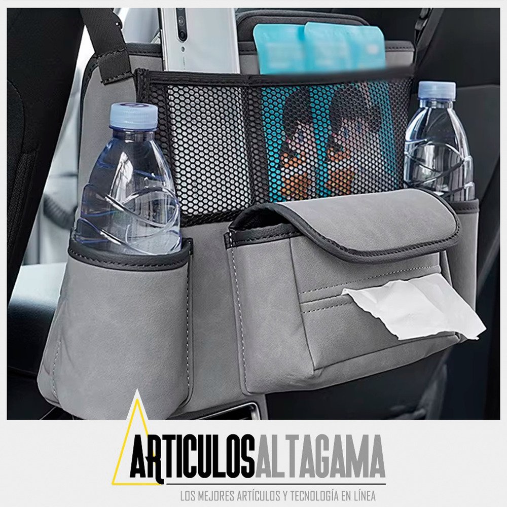 Mantén todo en orden dentro de tu vehículo con nuestro Organizador Multifuncional para Carro. Diseñado para brindarte comodidad y practicidad, cuenta con compartimentos ideales para guardar objetos personales como botellas de agua, pañitos, celular, gafas, llaves y más. Su diseño compacto y resistente se adapta fácilmente al espaldar del asiento, permitiéndote aprovechar al máximo el interior de tu carro.