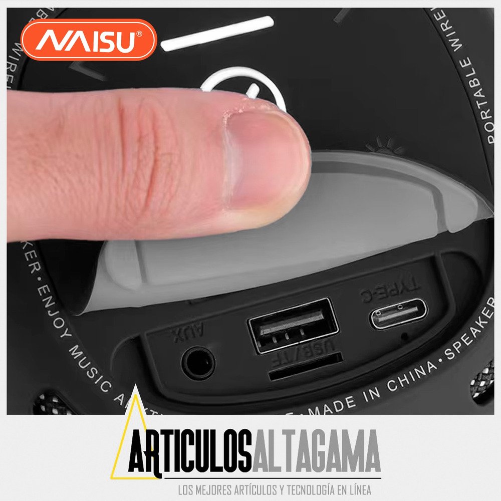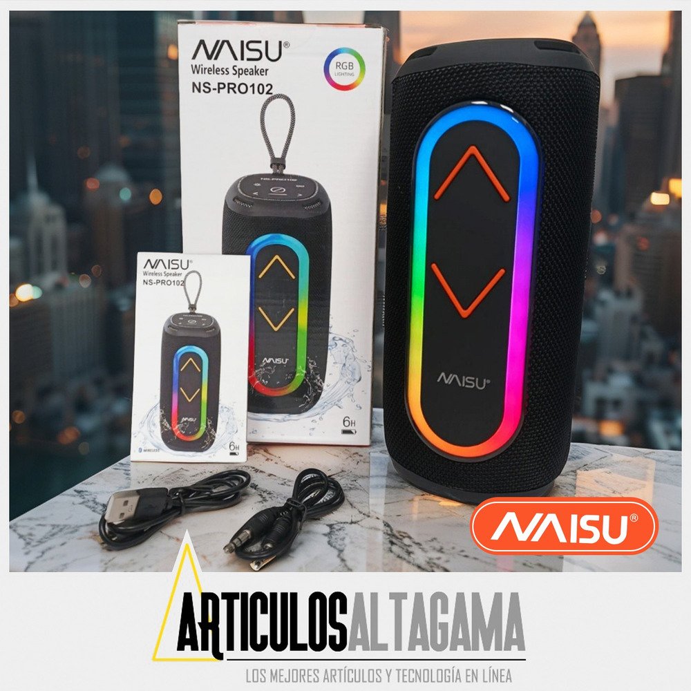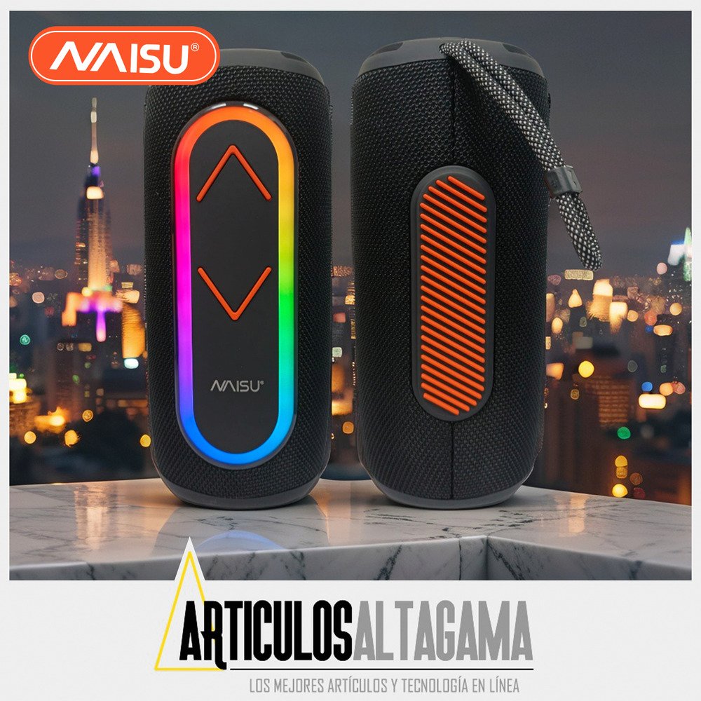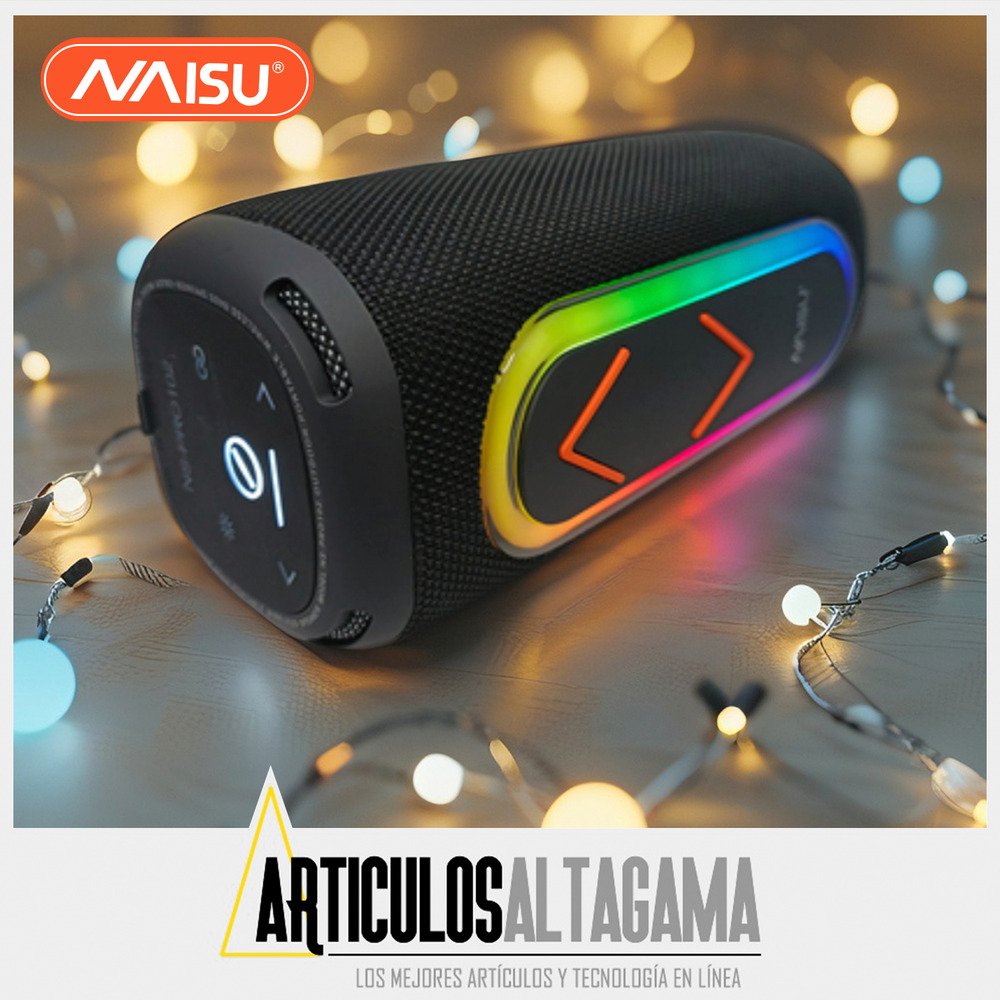 Llevá tu música a todas partes con el parlante portátil Naisu. Con Bluetooth, luces RGB que acompañan el ritmo y entradas USB y AUX, es perfecto para ambientar reuniones, salidas o simplemente disfrutar de tus canciones favoritas. Su diseño compacto y moderno, junto con una potencia de 10W, te ofrece un sonido claro y envolvente en cualquier momento.