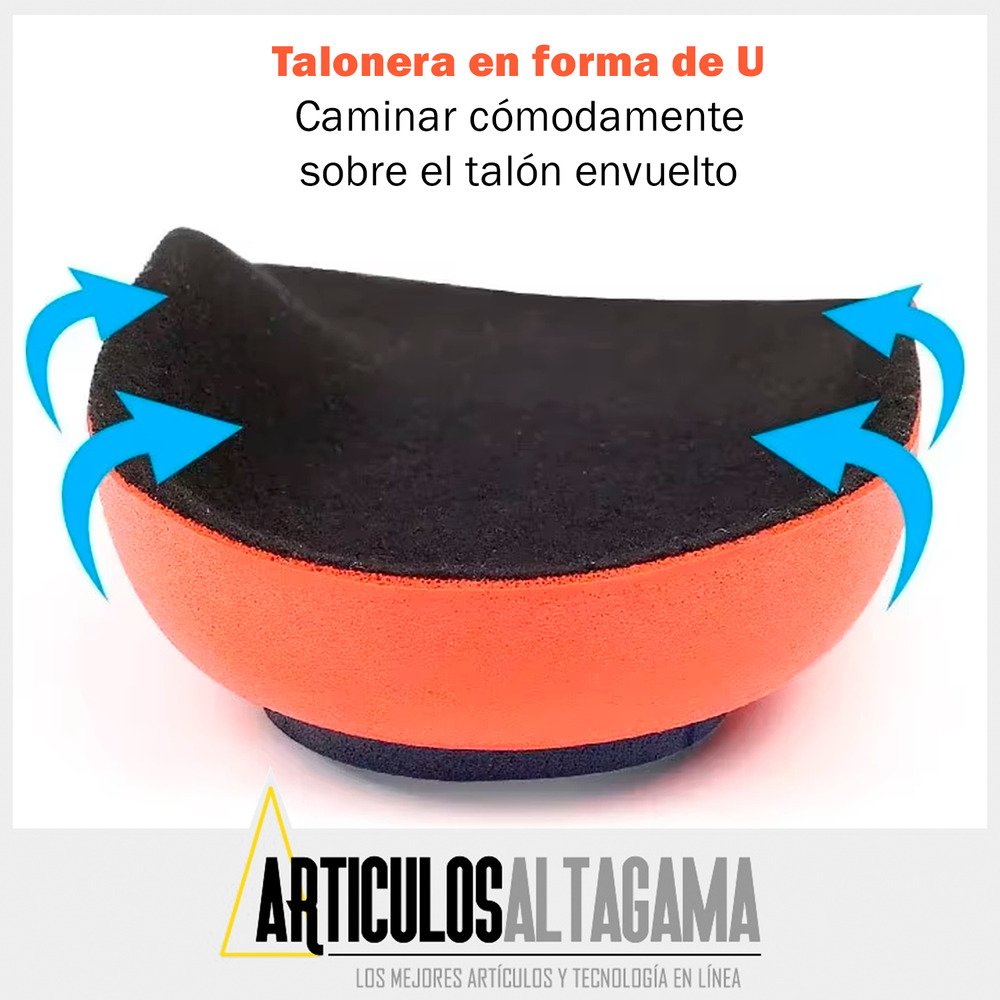 – Bloquea el talón y ayuda a sostener el arco y alivia el dolor de fascitis plantar.