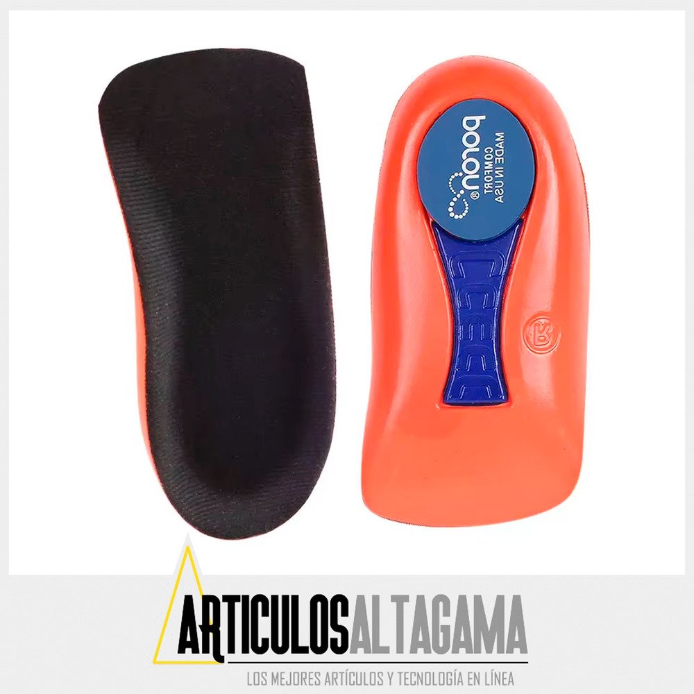 Especiales para amortiguar el golpe del pie durante la caminada, con su material en gel, previene y alivia el dolor para los que sufren de la fascia plantar o espuelón, eleva el talón gracias a su diseño y absorbe el golpeteo.