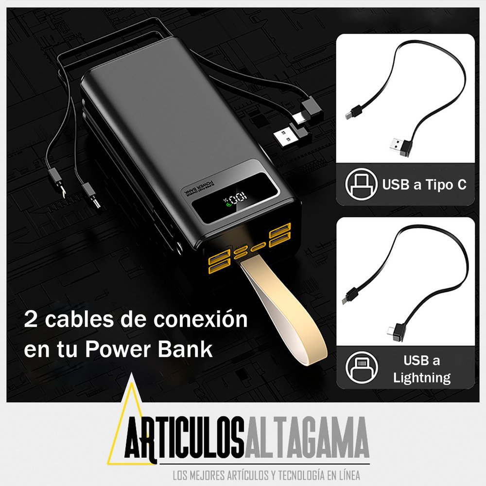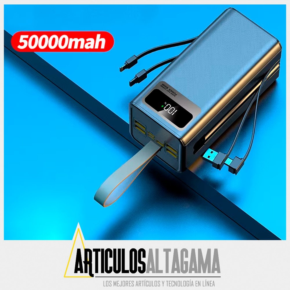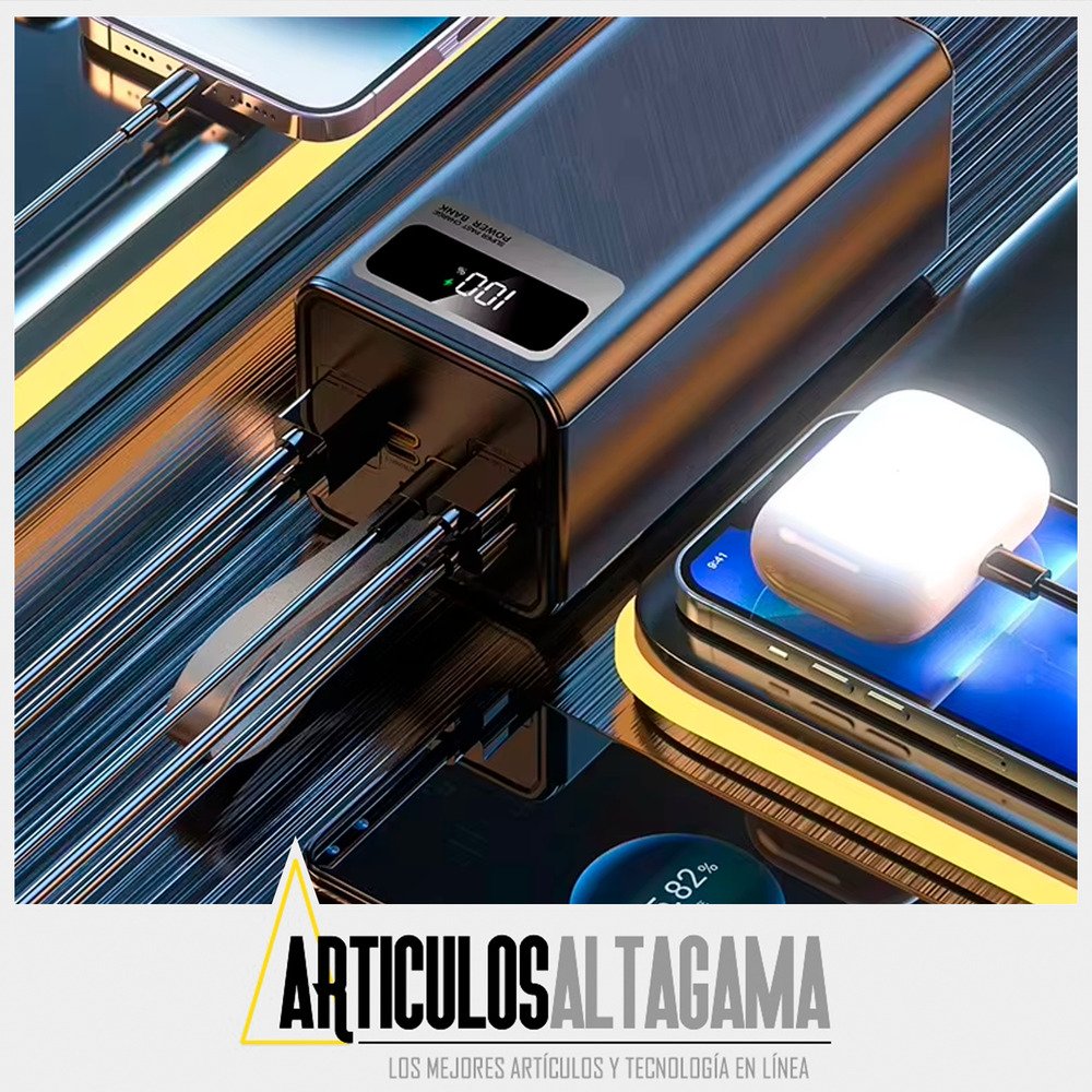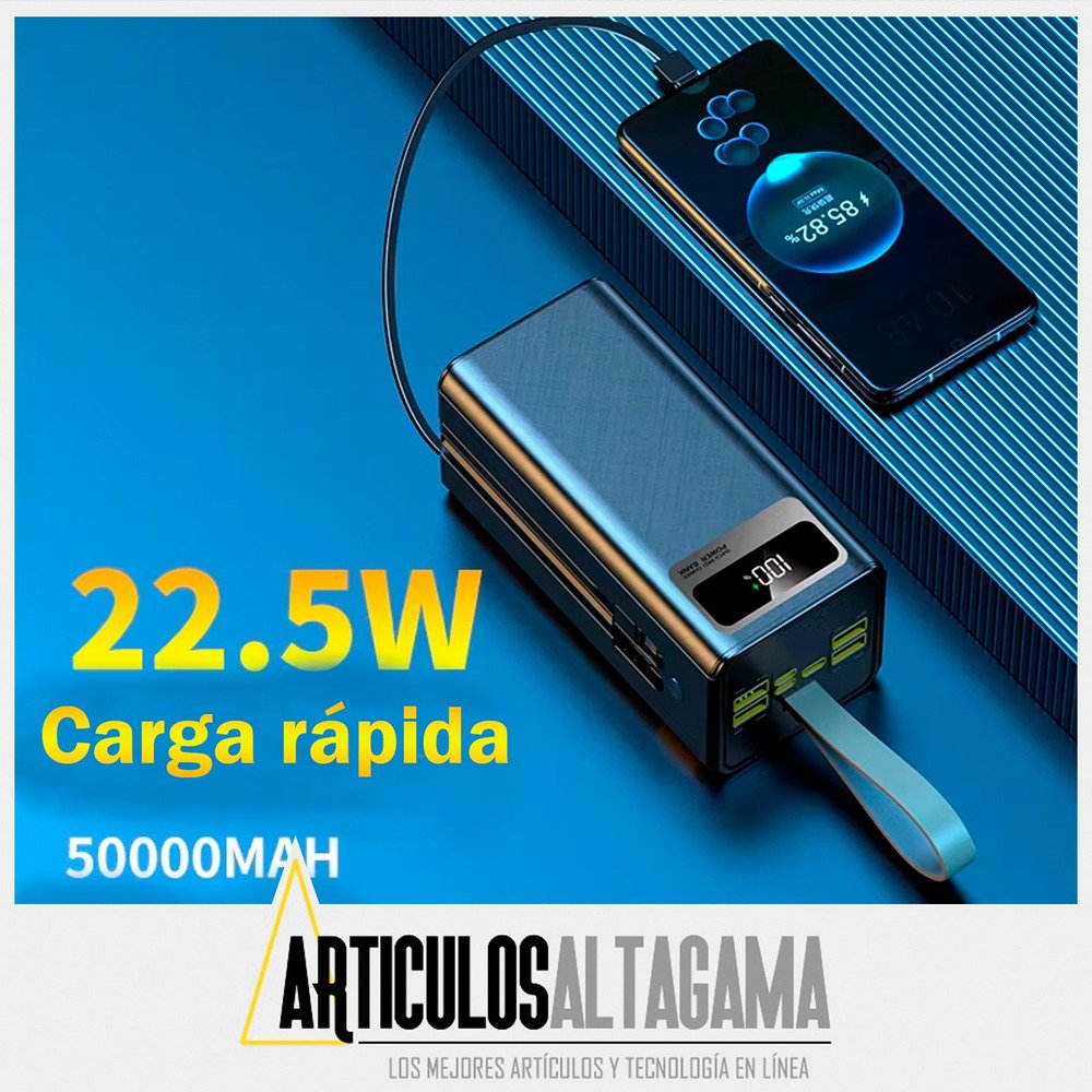Lleva energía ilimitada a donde vayas con este potente Power Bank de 50,000mAh, diseñado para mantener tus dispositivos siempre cargados. Su tecnología de carga rápida de 22.5W asegura una recarga eficiente, mientras que la luz LED incorporada te brinda una solución práctica en situaciones de poca iluminación. Ideal para viajes, emergencias o uso diario, este cargador portátil combina gran capacidad, funcionalidad y comodidad en un solo dispositivo.