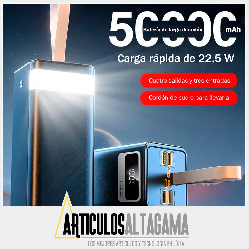 Power Bank batería 50000mAh con Luz LED y Carga Rápida 22.5W