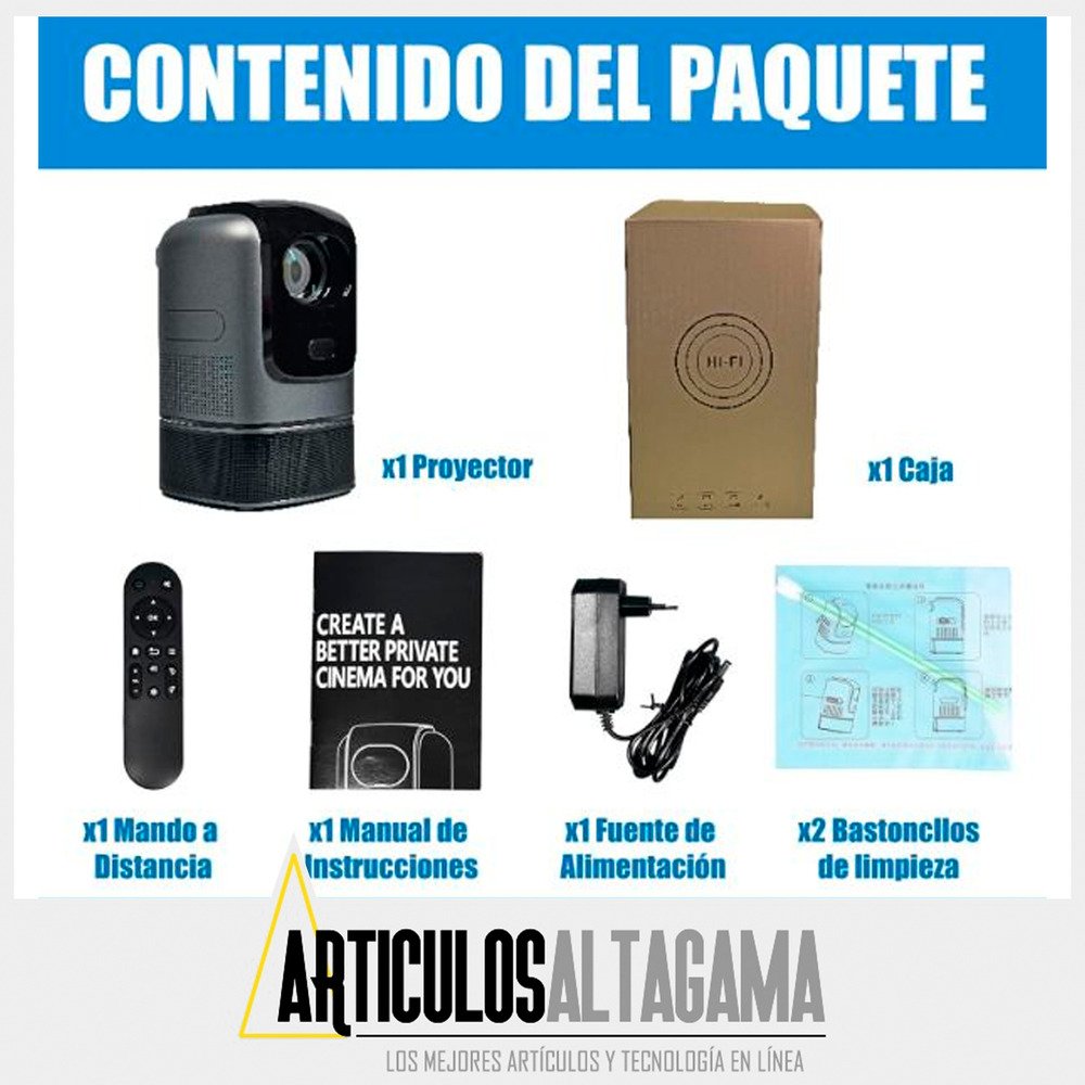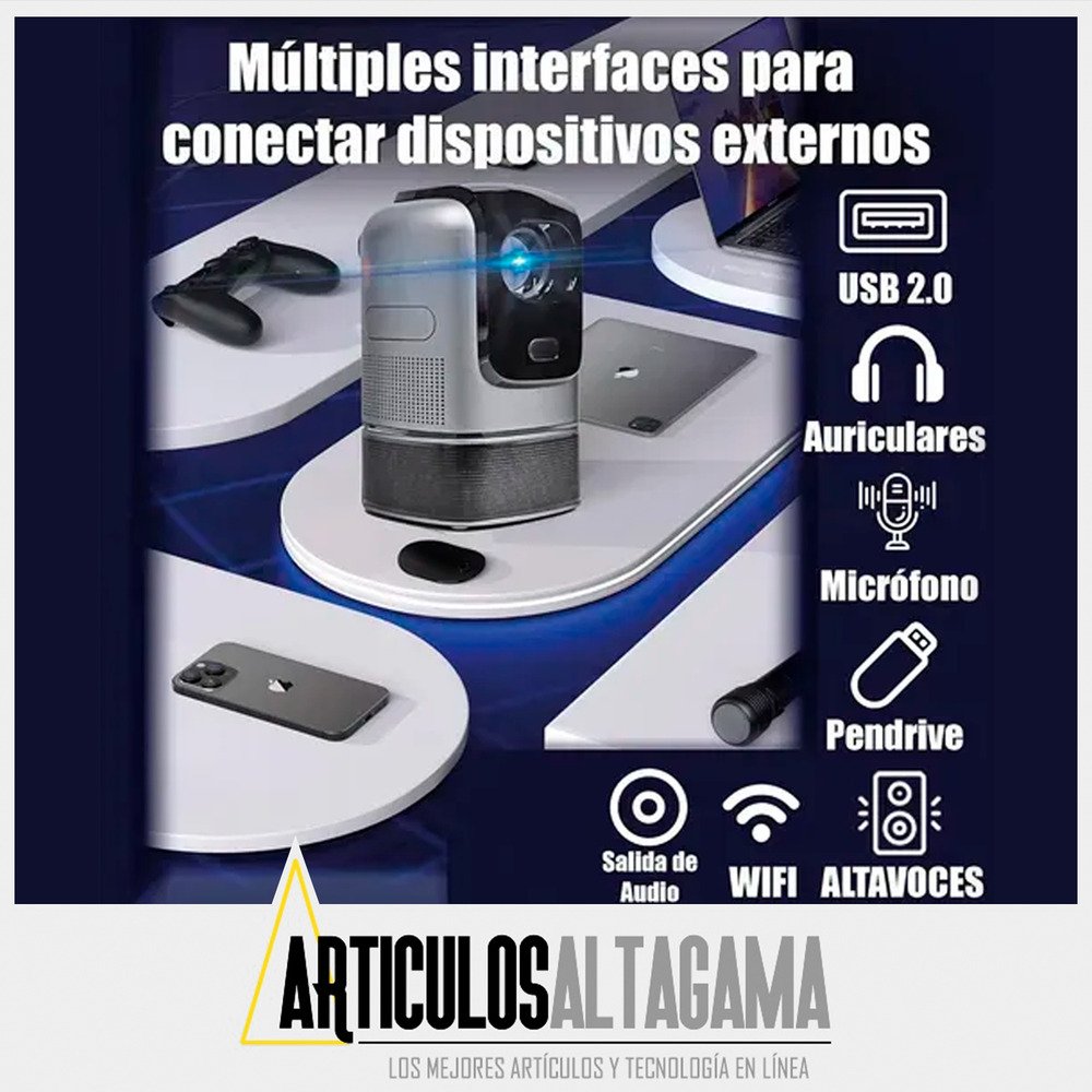Disfruta tus películas, presentaciones o videojuegos con el Proyector Inteligente con trípode ajustable y control remoto. Su diseño compacto y moderno permite proyectar imágenes claras y brillantes en cualquier superficie. Gracias a su trípode con ángulo regulable, puedes ajustar la altura y dirección fácilmente para lograr la mejor visualización en todo momento.