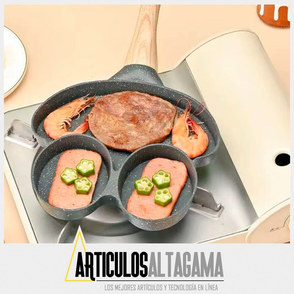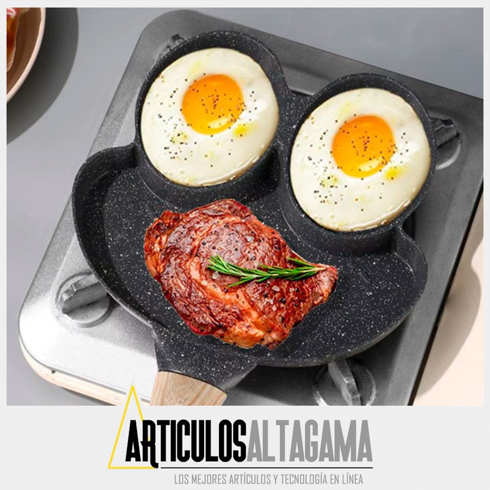 – Usos múltiples: Este sartén es muy practico para preparar Huevos, Tortillas, Arepas, Pancakes, Hamburguesas entre otros, cuenta con una mini parrilla + dos agujeros para que cocinar sea rápido y fácil.