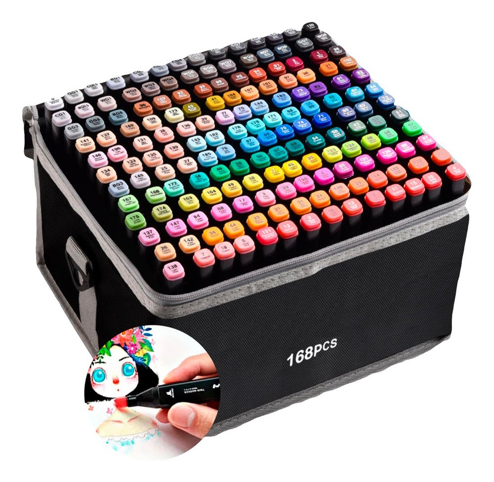Set de 168 Marcadores Pigmentados de Alta Durabilidad Doble Punta