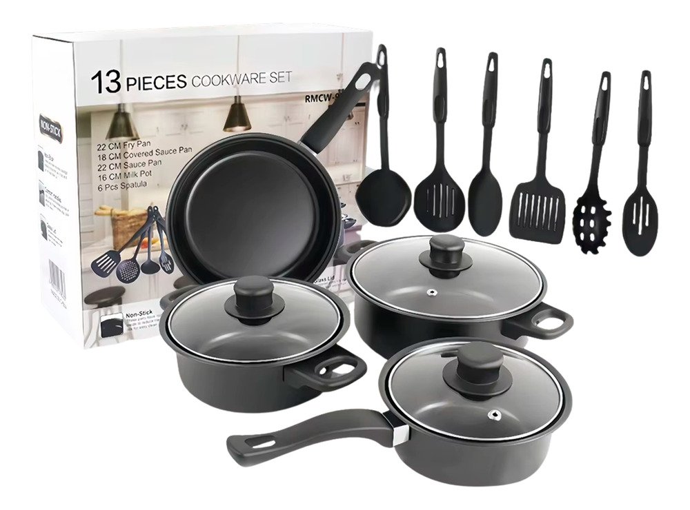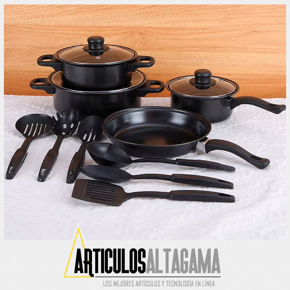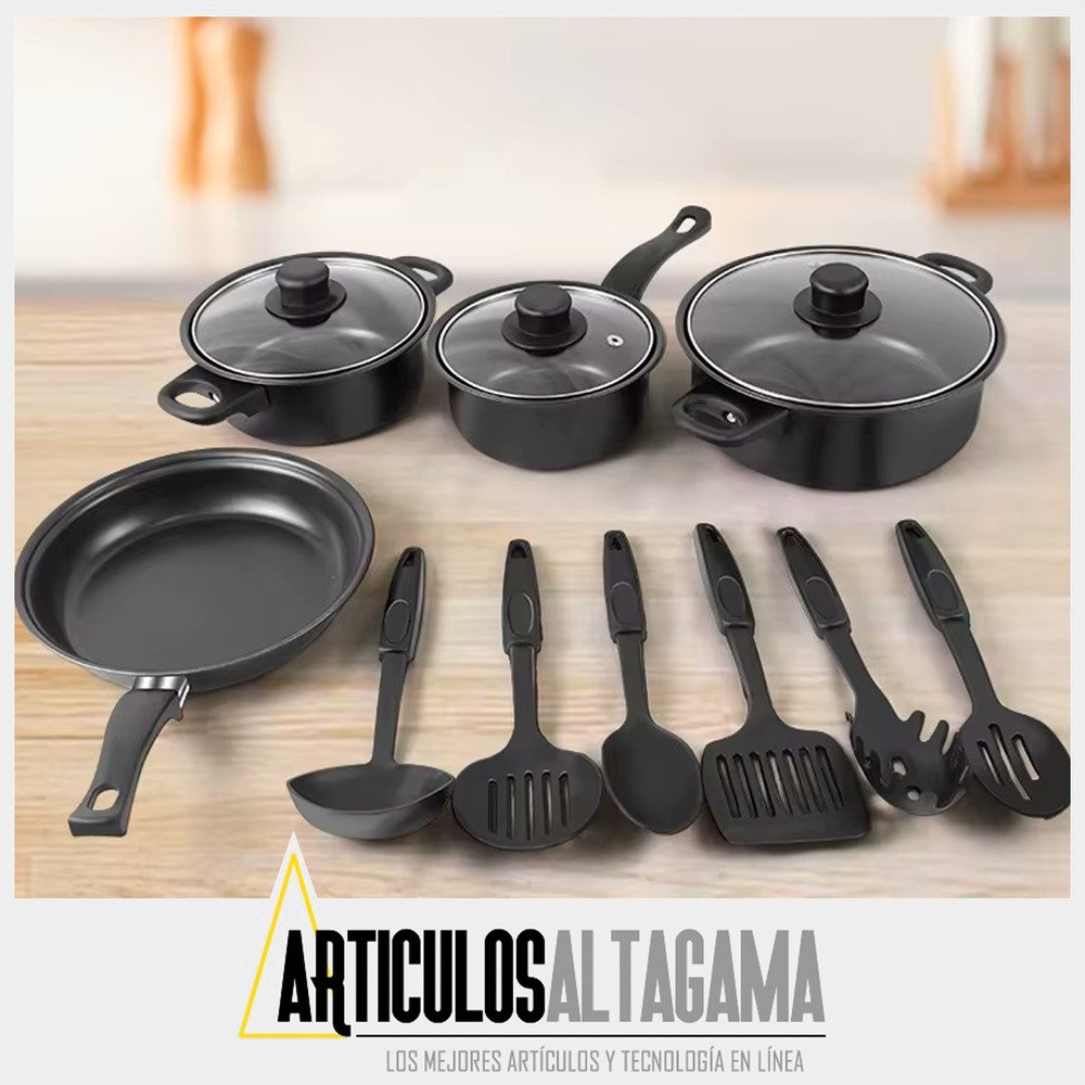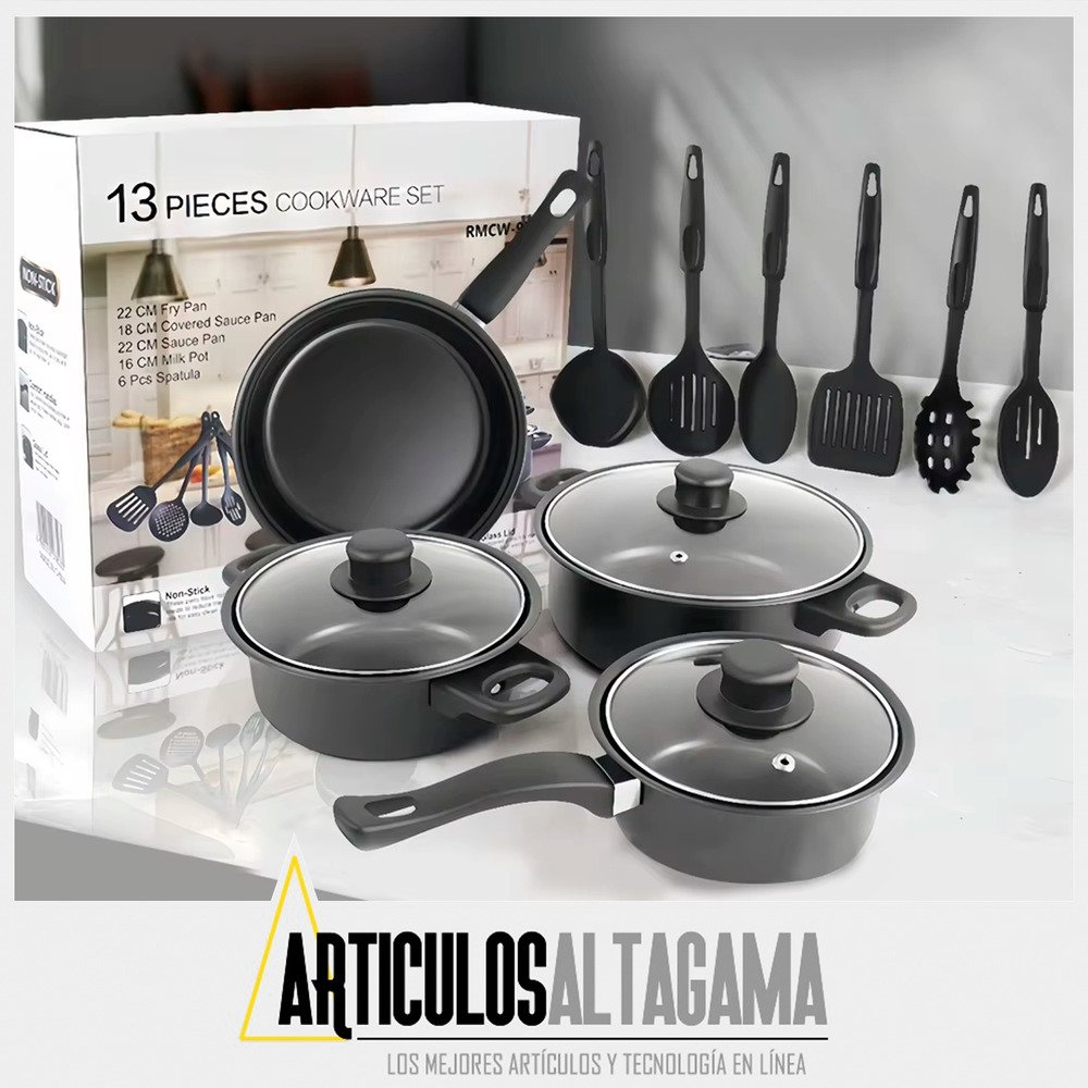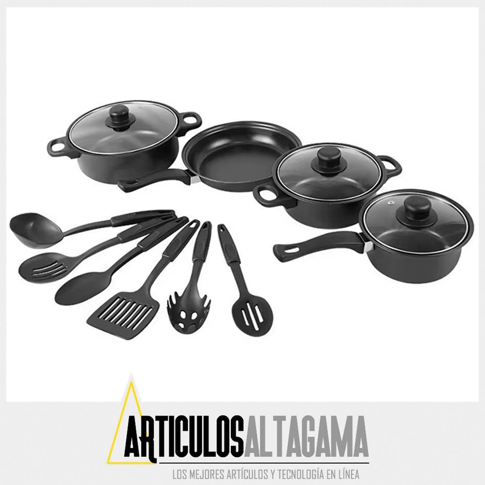 Set De Cocina Completo 13 Piezas Con Sartenes Tapas Cucharas