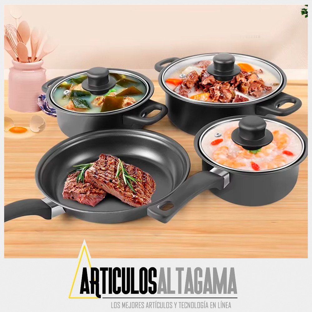 Prepara tus comidas favoritas con estilo y practicidad gracias a este juego de sartenes de 13 piezas con tapas y cucharas incluidas. Su diseño moderno y funcional te ofrece todo lo necesario para cocinar con comodidad, desde salteados hasta preparaciones más elaboradas. Las piezas están fabricadas con materiales resistentes al calor y cuentan con un recubrimiento antiadherente que evita que los alimentos se peguen, facilitando la limpieza y cuidando la salud de tu familia.
