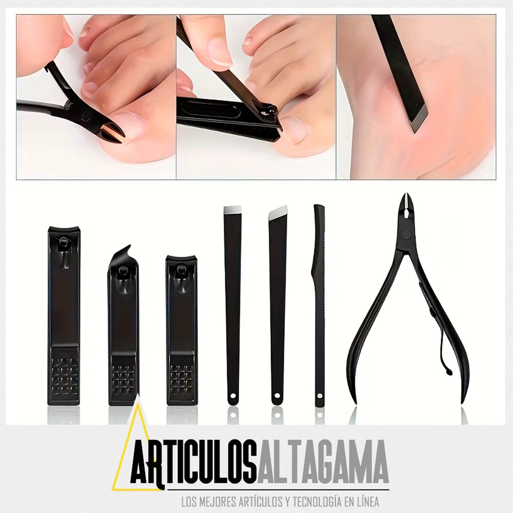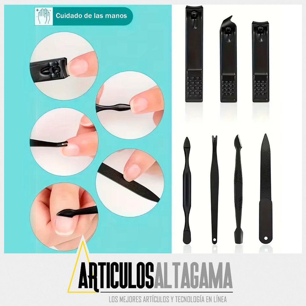 – Incluye cortaúñas, tijeras, pinzas, lima, removedor de cutículas y más.
