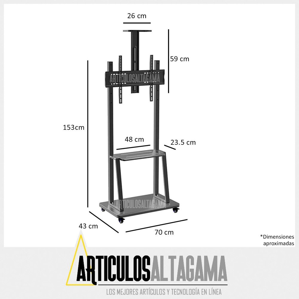 Hecho de acero que ofrece fuerza y durabilidad, de color negro. Ideal para colocar tu televisor de una forma orden y así mantener el orden en tu hogar u oficina.