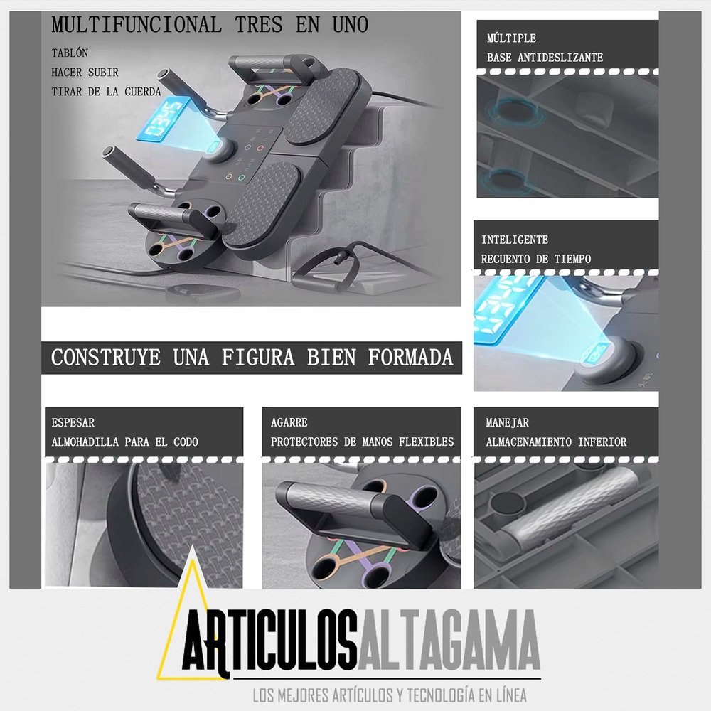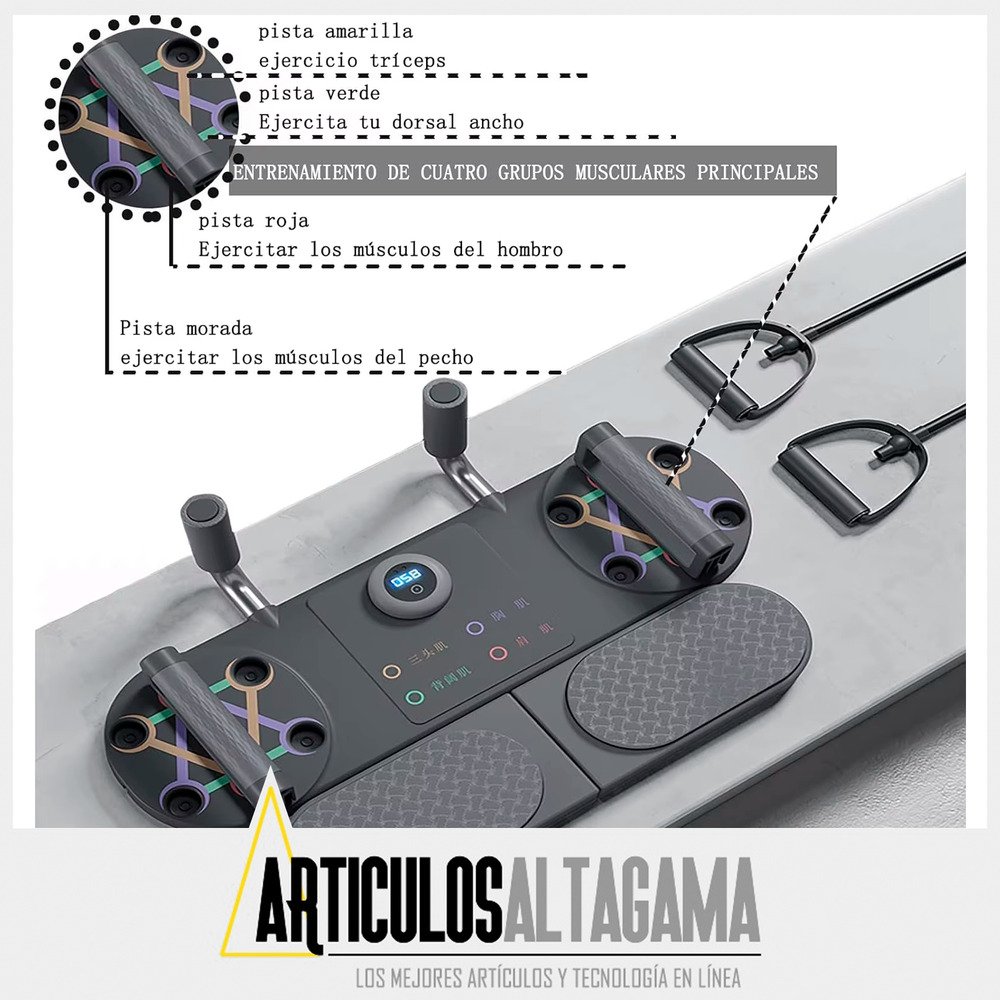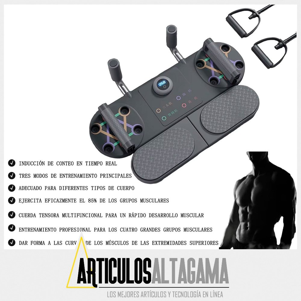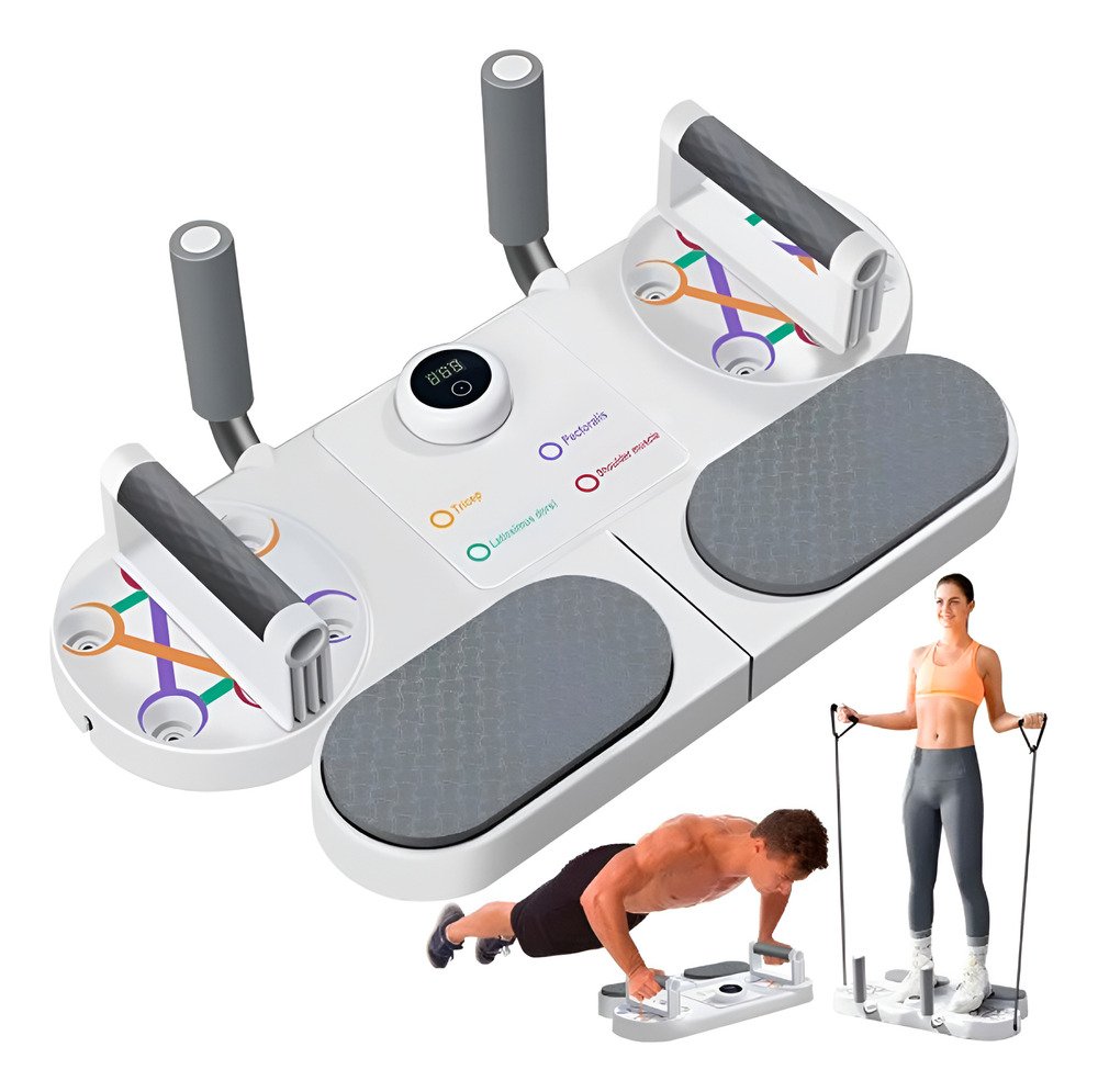 Mejora tu entrenamiento en casa con esta tabla de flexiones multifuncional, diseñada para trabajar todo el cuerpo de manera segura y eficaz. Incluye bandas elásticas de alta resistencia para aumentar la intensidad del ejercicio, permitiendo fortalecer pecho, espalda, brazos, abdomen, glúteos y piernas. Su sistema codificado por colores te guía en los diferentes grupos musculares, mientras que los mangos antideslizantes y su estructura estable brindan comodidad y seguridad durante cada sesión. Ideal tanto para principiantes como para deportistas avanzados que buscan un entrenamiento completo y práctico desde casa.
